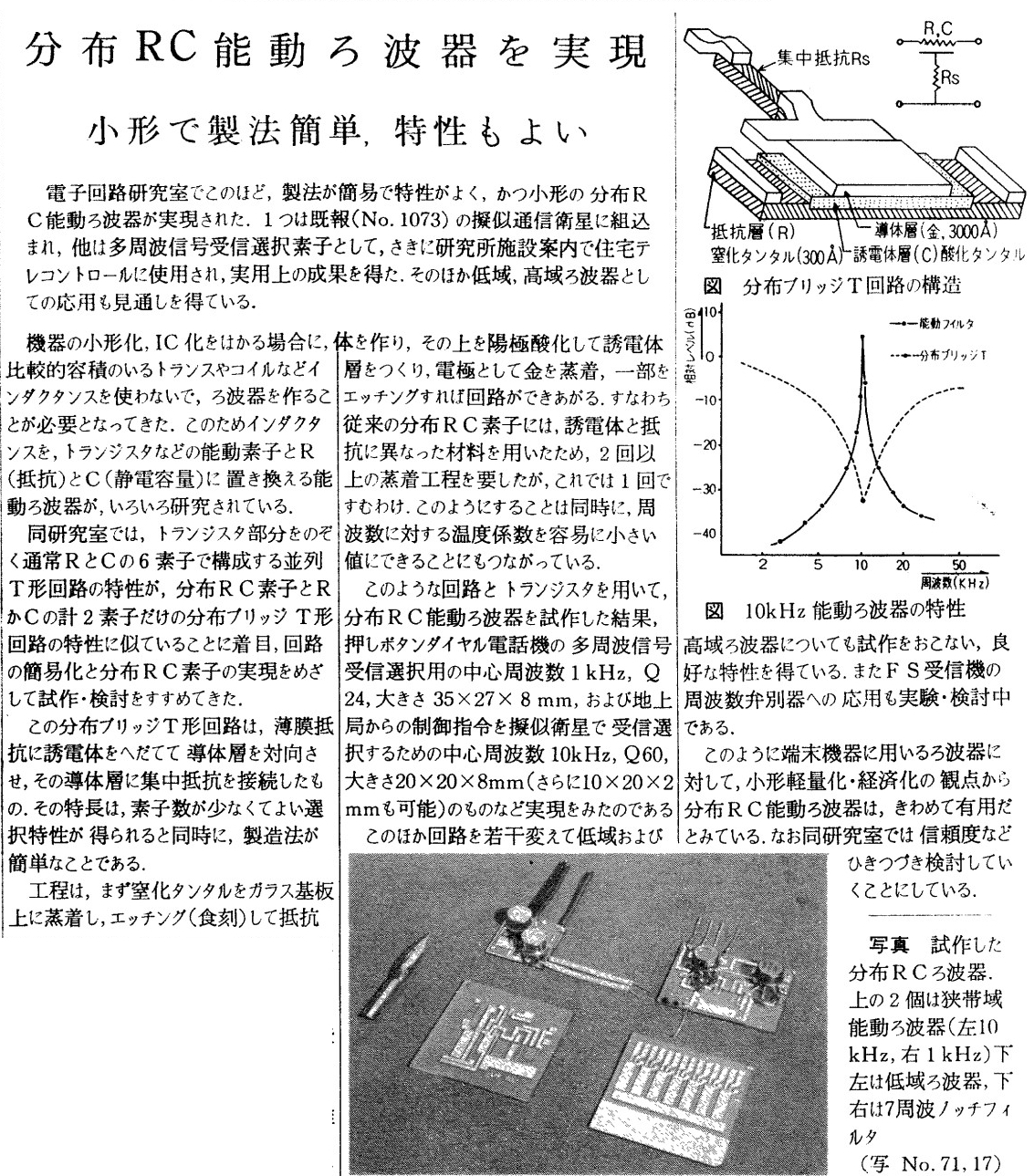 混成IC化RCアクティブフィルタ 1971.1.28 |