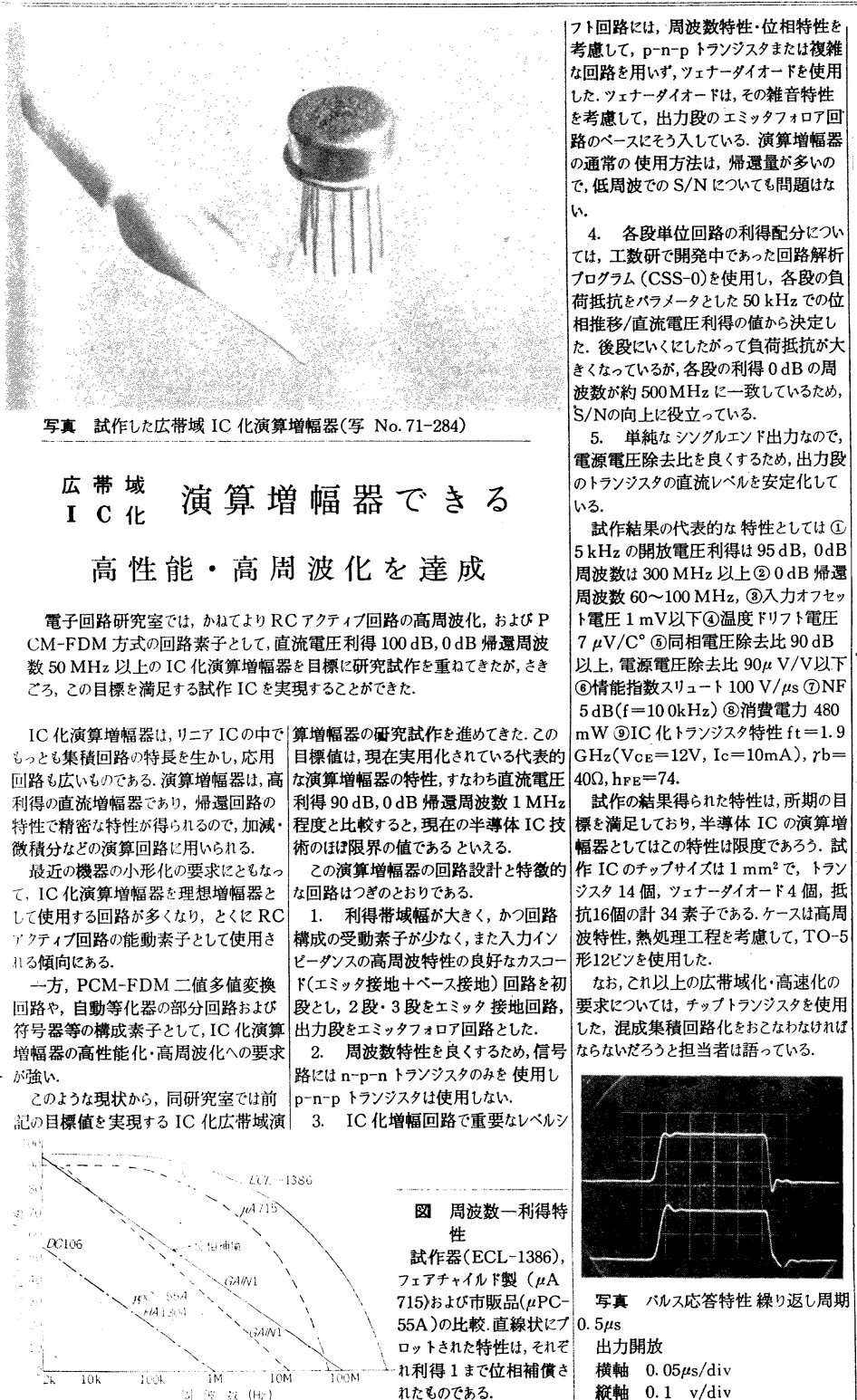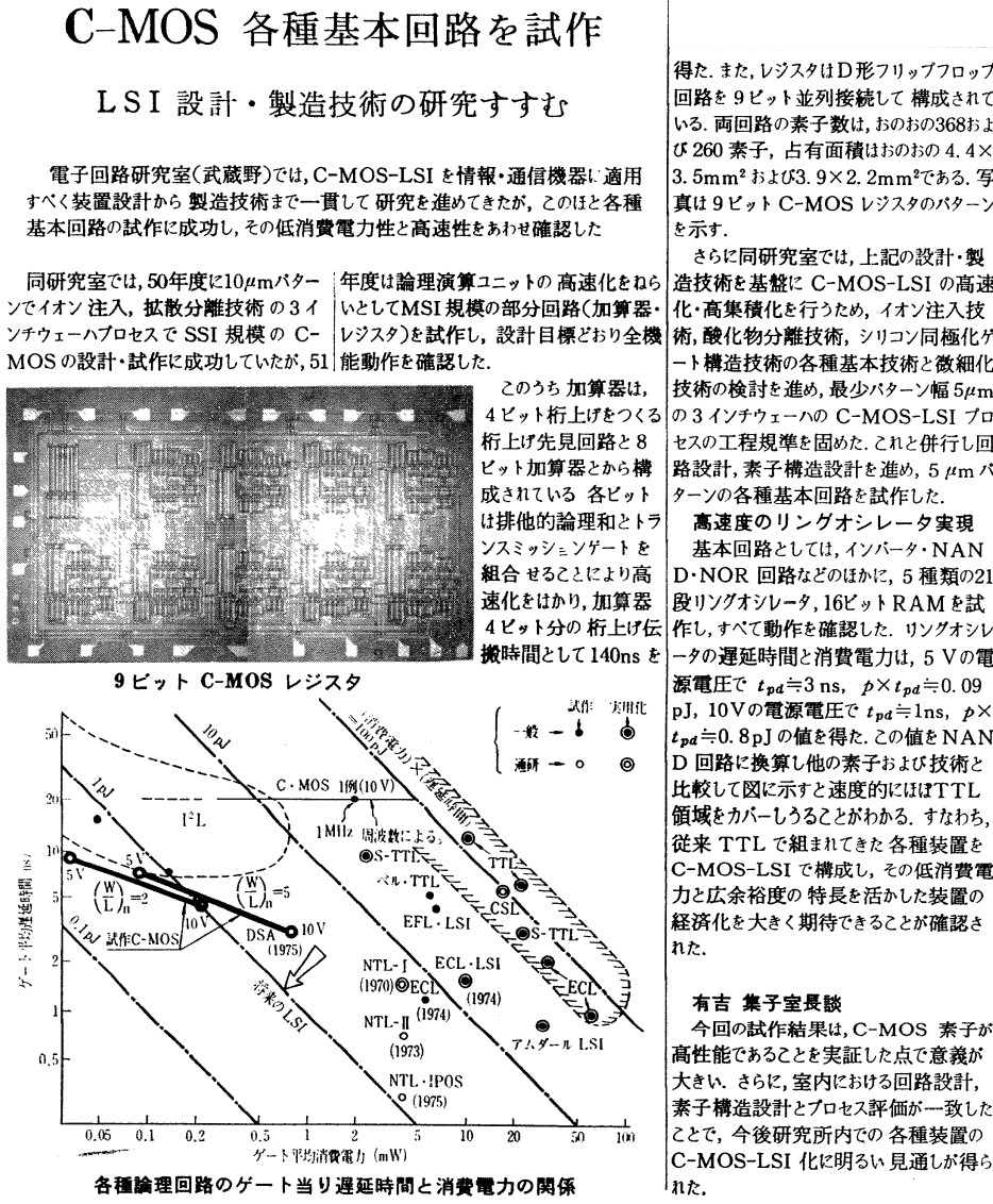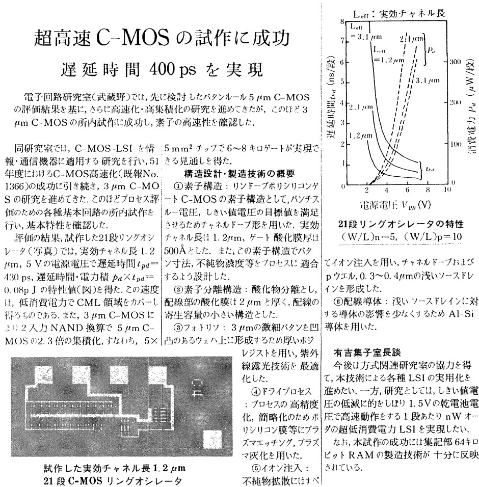 CMOS の高速性を実証 (Ring Oscllator) 1977.10.6 |
