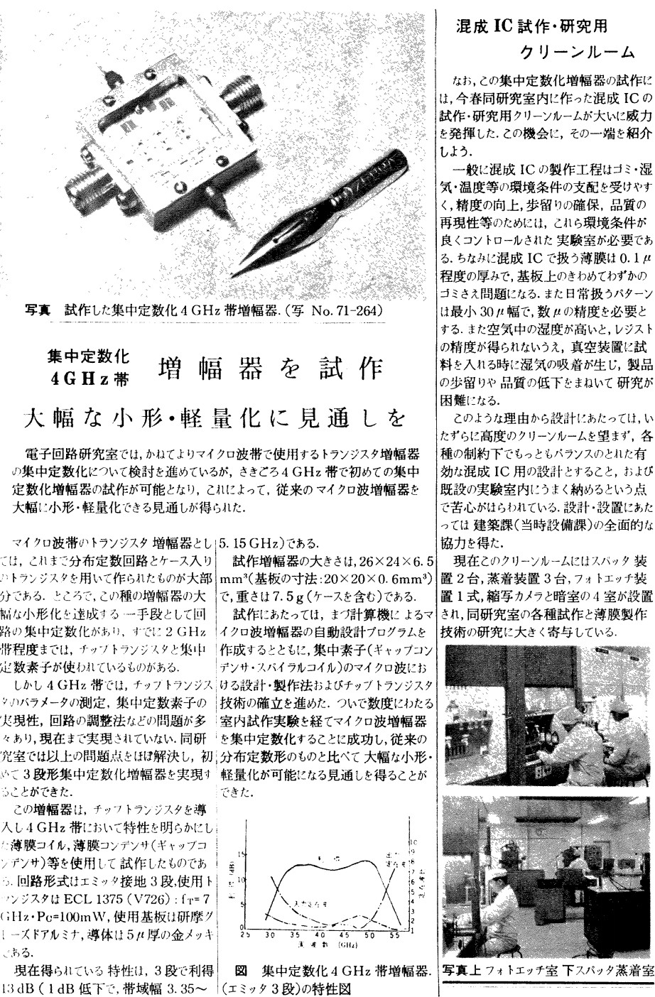 混成IC化 集中定数設計 4GHz アンプ 1971.9.9 |