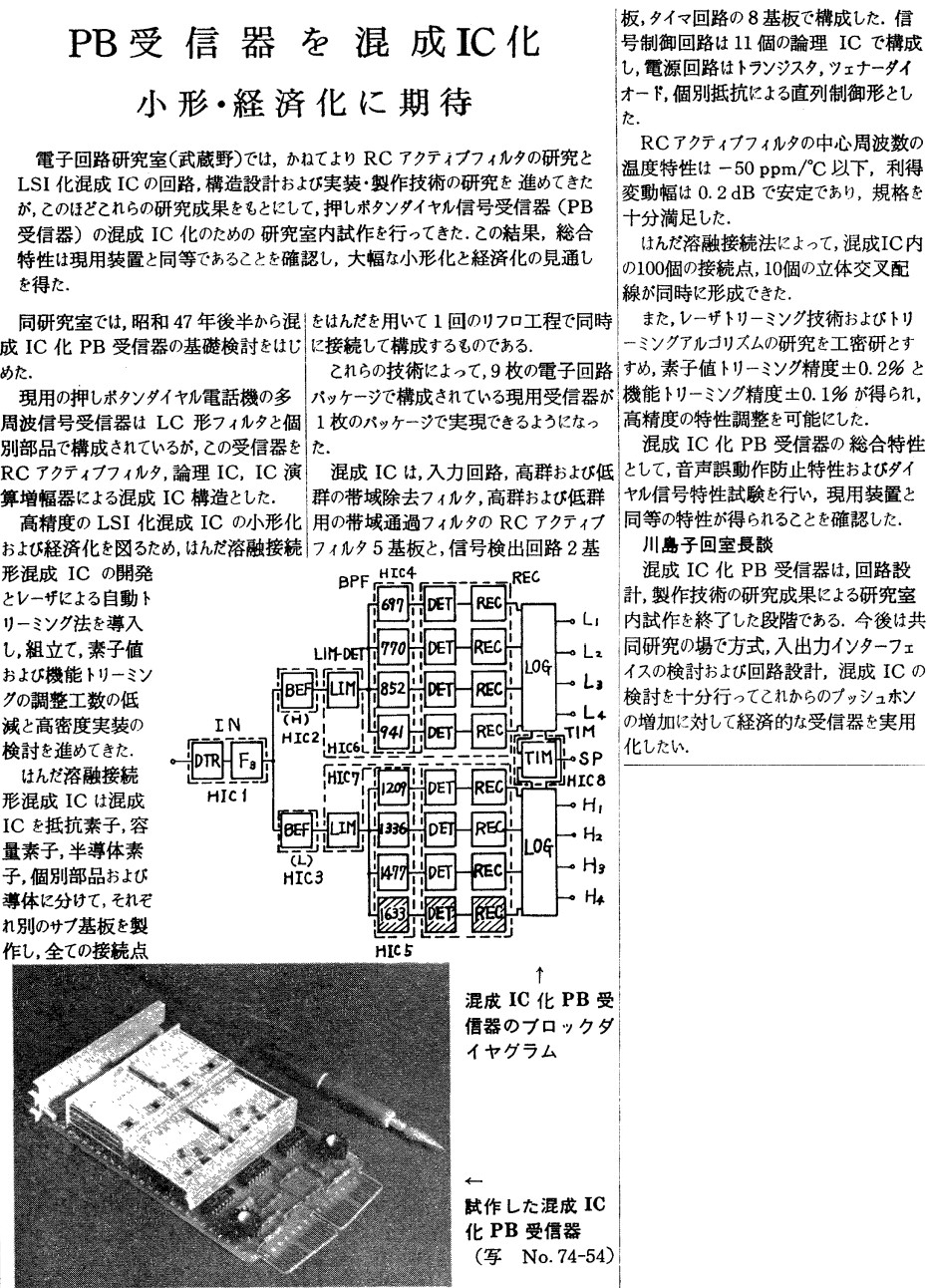 混成IC化プッシュボタン信号(PB)受信器 1974.3.22 |