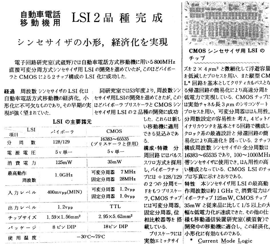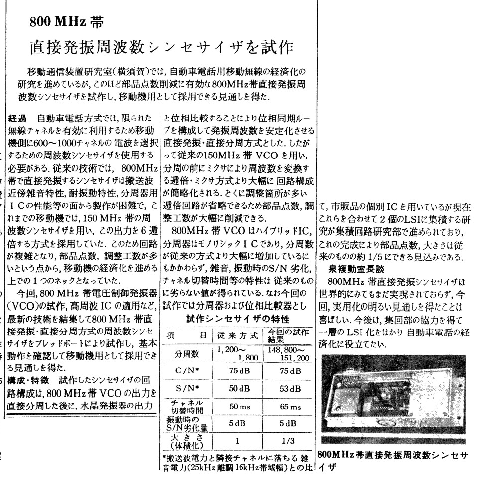 800MHz 周波数シンセサイザ LSI 1980.5.15 |