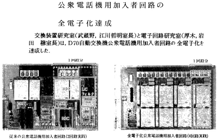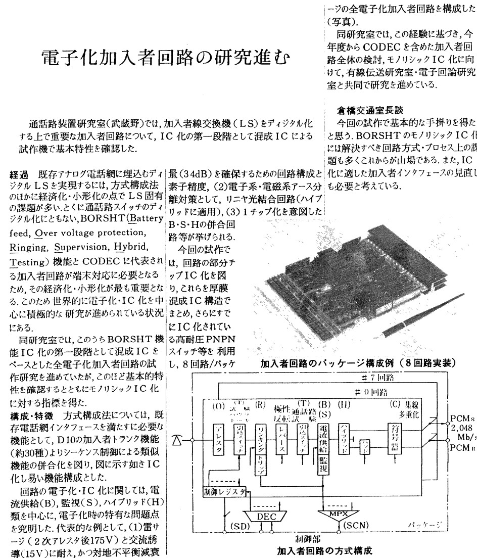 混成IC化全電子電話加入者回路(無リレー) 1979.10.4 |