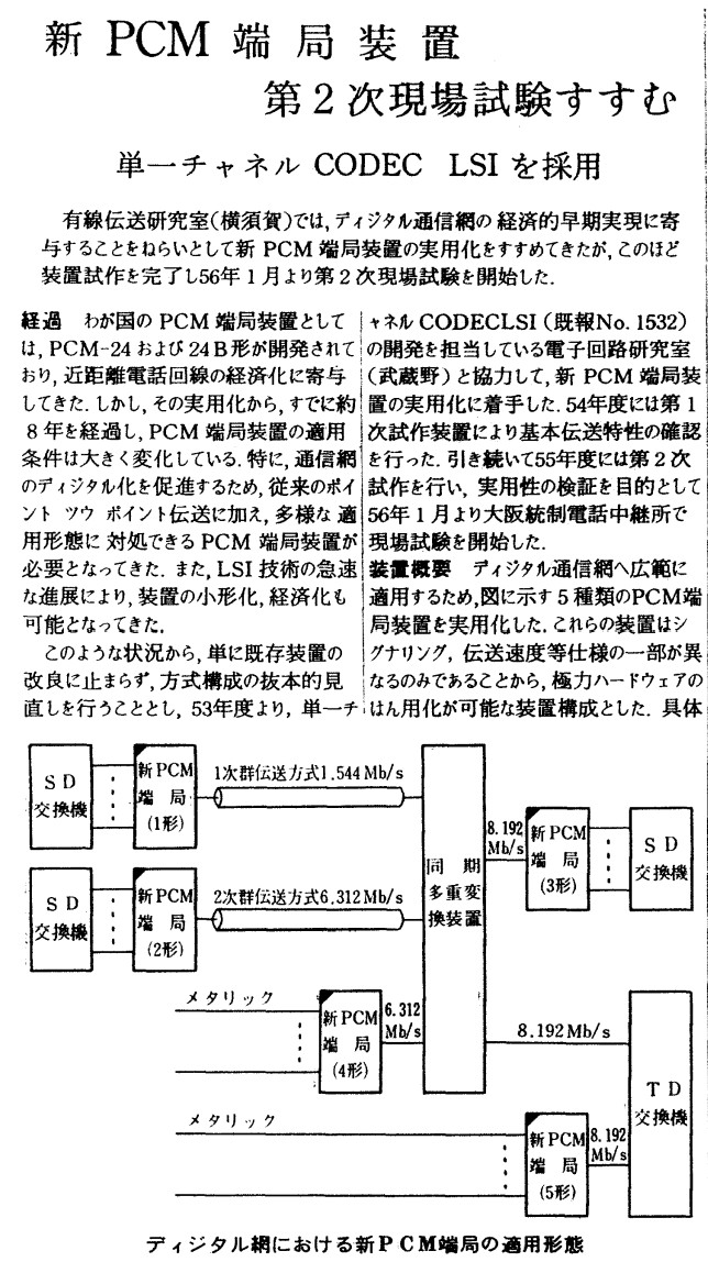 新PCM 端局装置(CODEC-LSI搭載) 1981.11.26 |