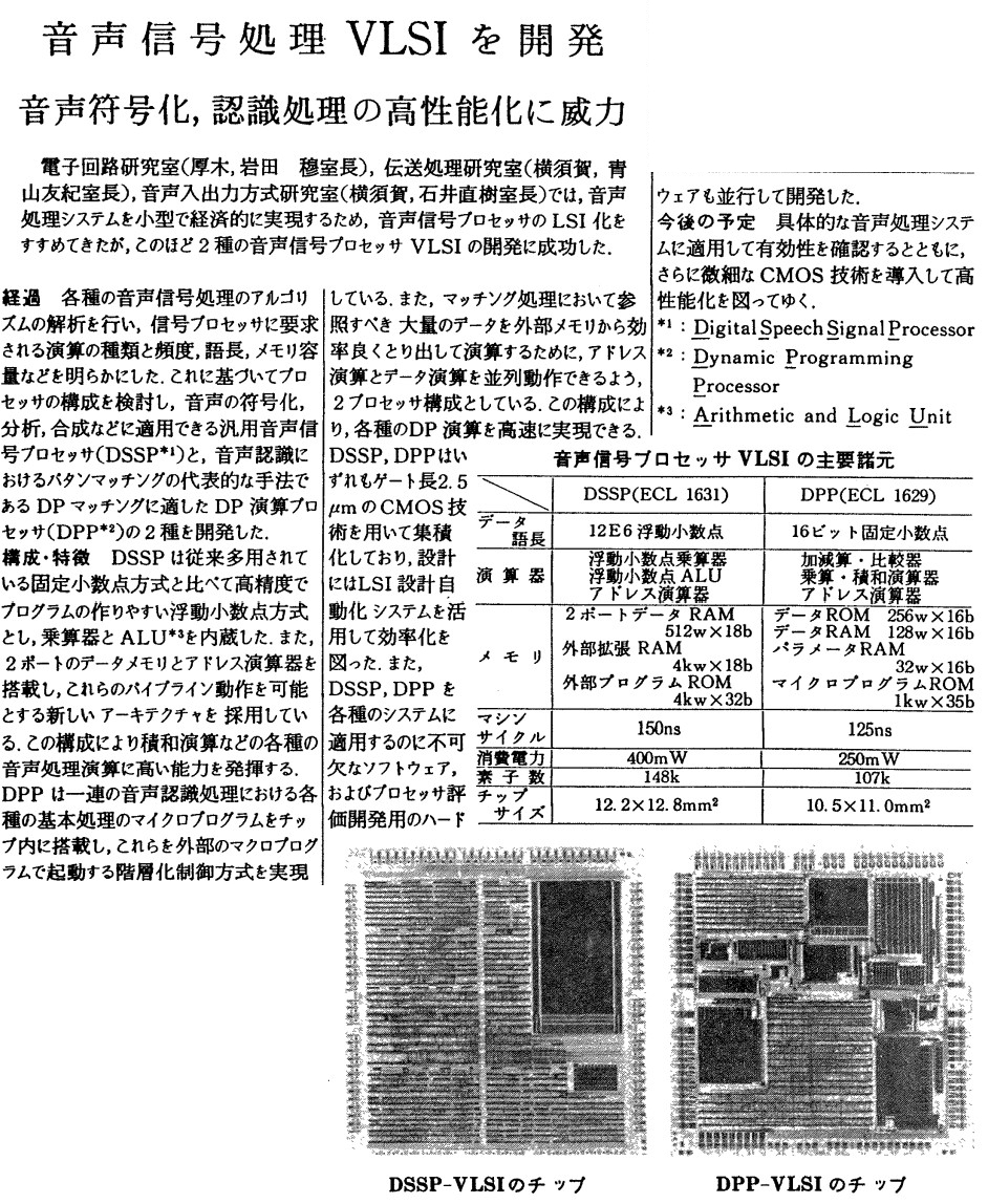 音声信号デジタル処理プロセッサ LSI 1985.7.18 |