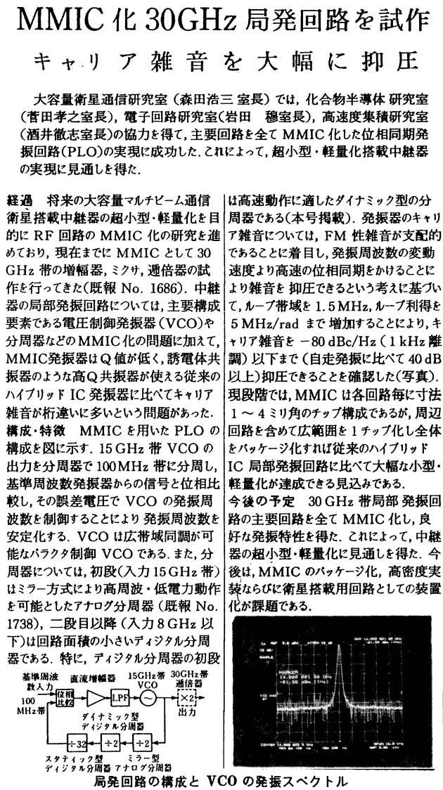 衛星通信用30GHz 局発MMIC開発 1986.4.3 |