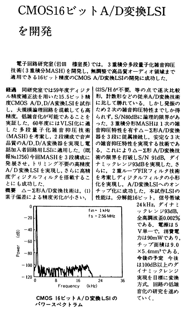 オーディア品質CMOS 16bit ADC LSI MASH(Multi Stage Noise Shaping)適用 1987.4.30 |