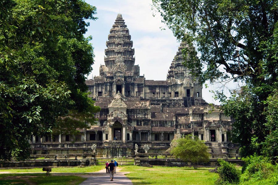 カンボジア北西部に位置する世界遺産「アンコール遺跡」を代表する巨大な寺院である。建設時はヒンドゥー教寺院として作られたが16世紀後半に仏教寺院に改修され、現在も上座部仏教寺院となっている。クメール語でアンコールは王都、ワットは寺院を意味するため、「国都寺院」という意味となる。大伽藍と美しい彫刻を特徴としクメール建築の傑作とされ、カンボジア国旗の中央にも同国の象徴として描かれている。 ヒンドゥー教と仏教の融合文化と言われるクメール文化を結集した神話やデバターやアスサラスのレリーフが廊下や壁面に施されている。須弥山を表す三層の回廊に囲まれた空に伸びた祠堂が多数建ち、左右対称建物の構造は威厳があって、かつ美しい。 また、遺跡から見る朝陽や夕陽の風景も素晴らしい。