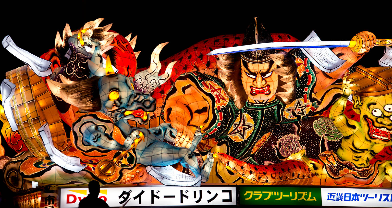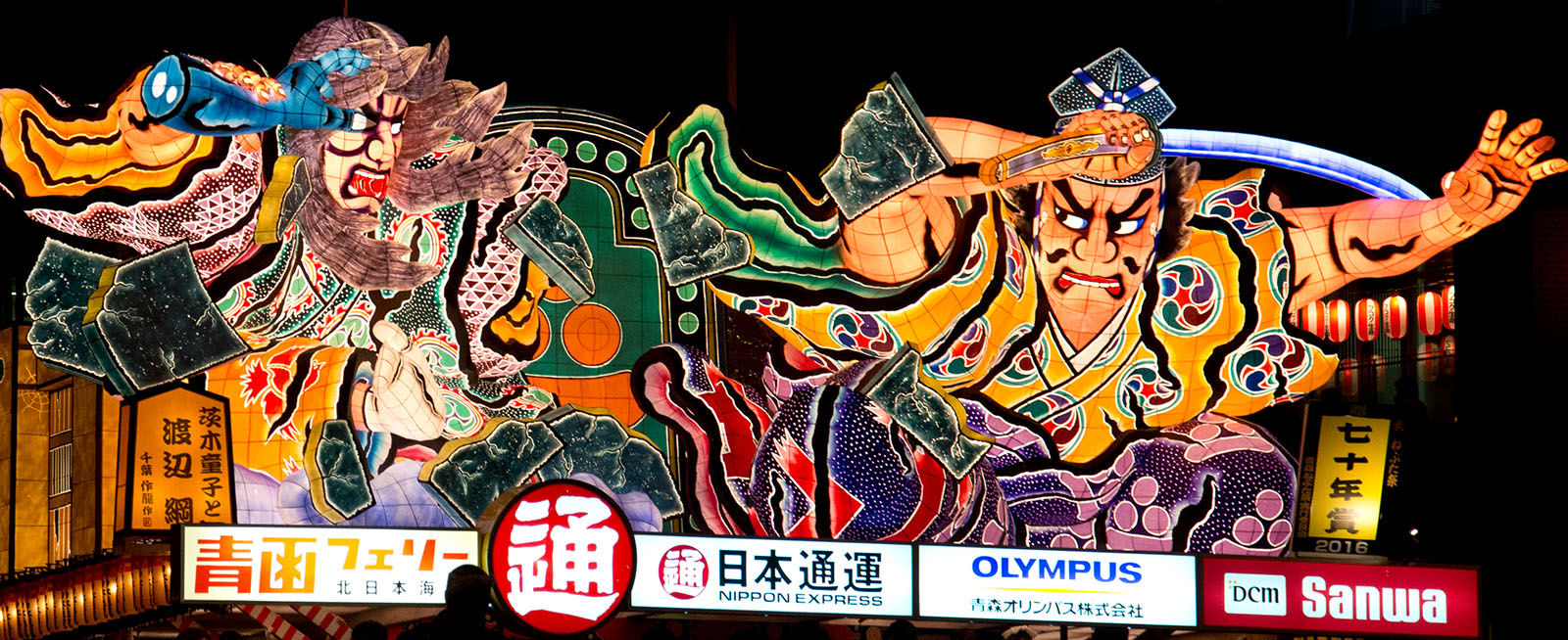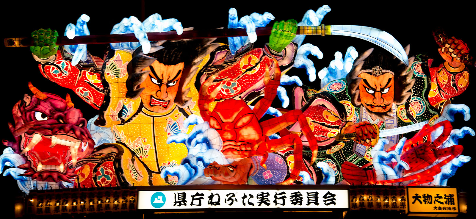 JRねぶた 蝦夷が島 夷酋と九朗義経 (動画)