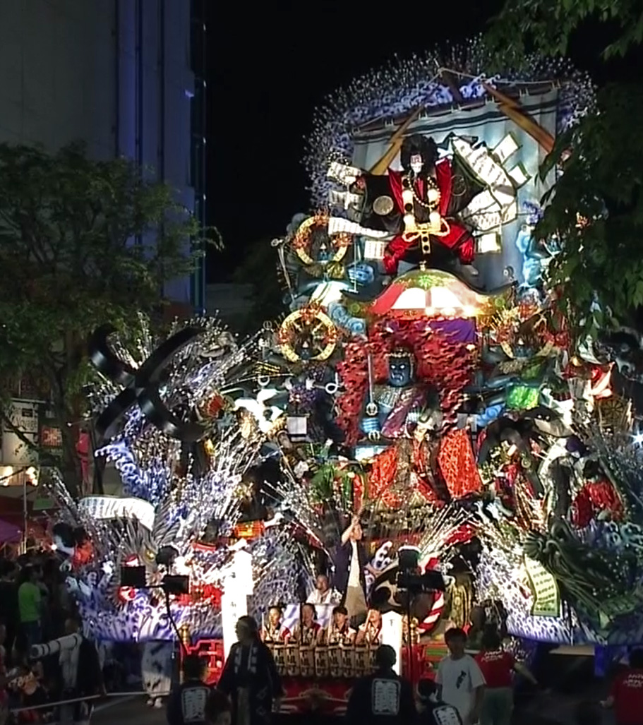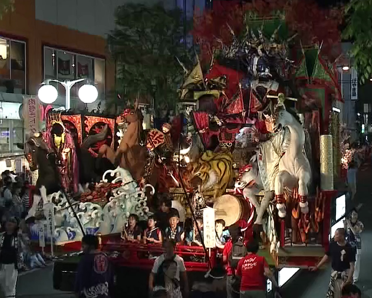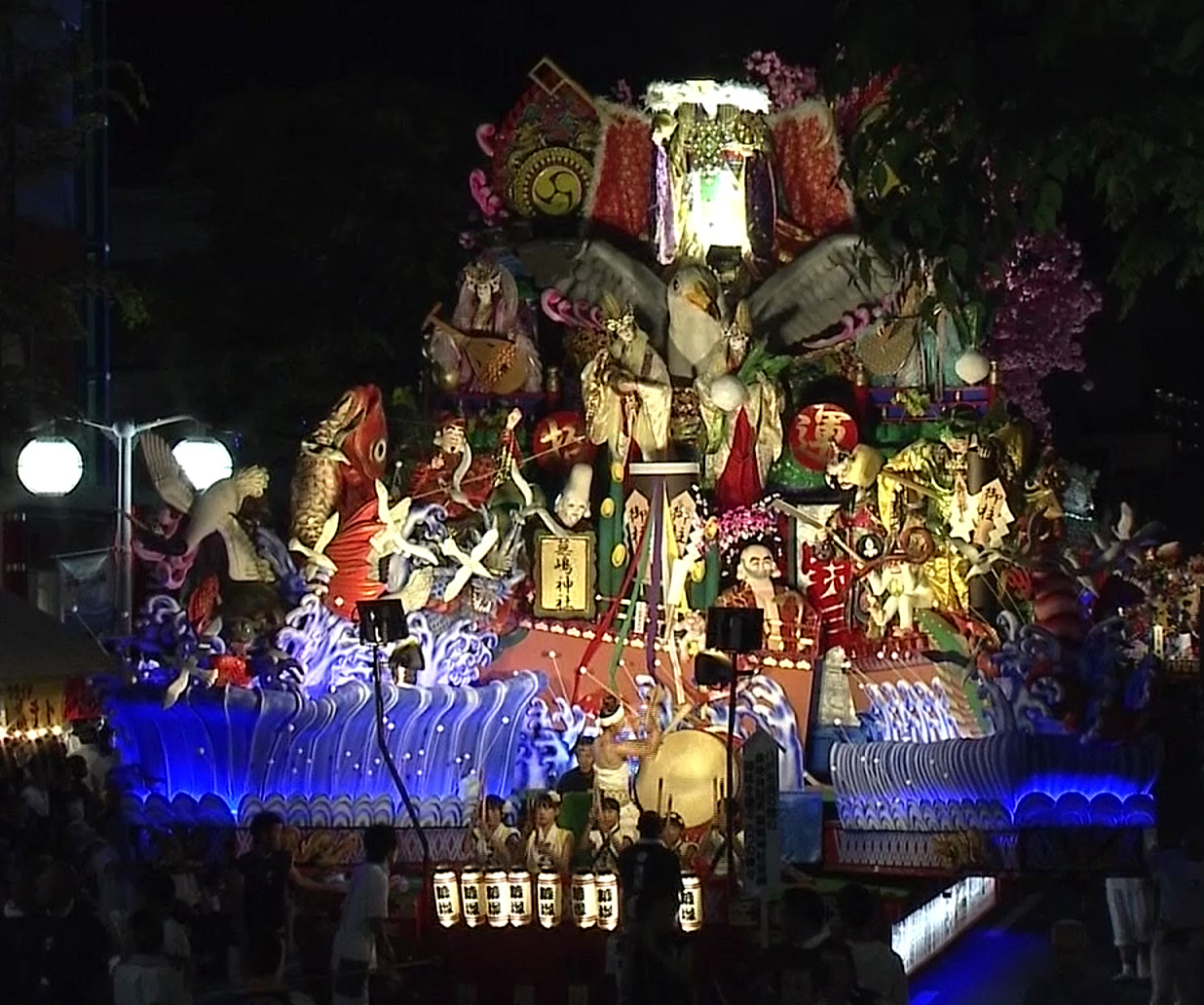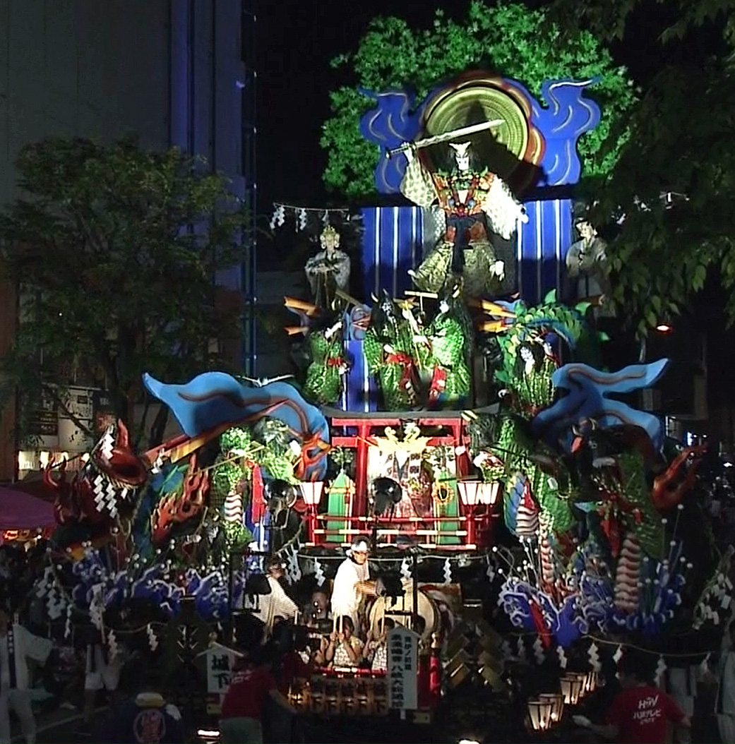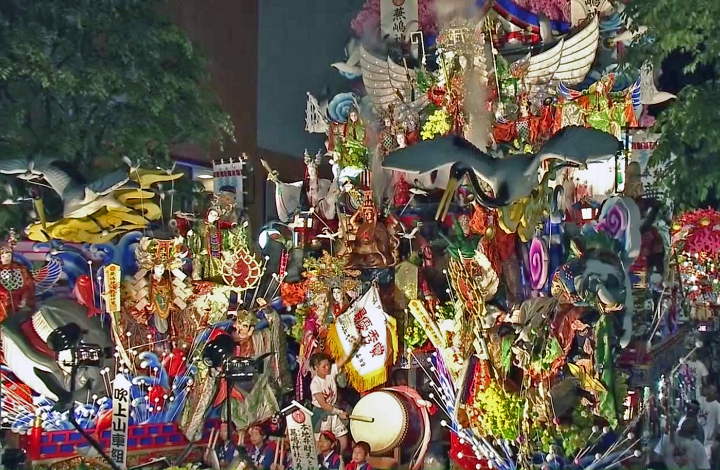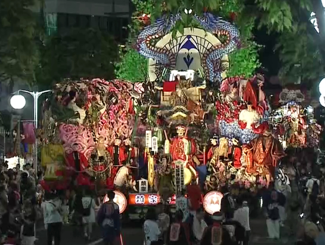 8月2日:中日(なかび)は山車の夜間合同運行、8月4日は後夜祭で山車の展示が行われる.