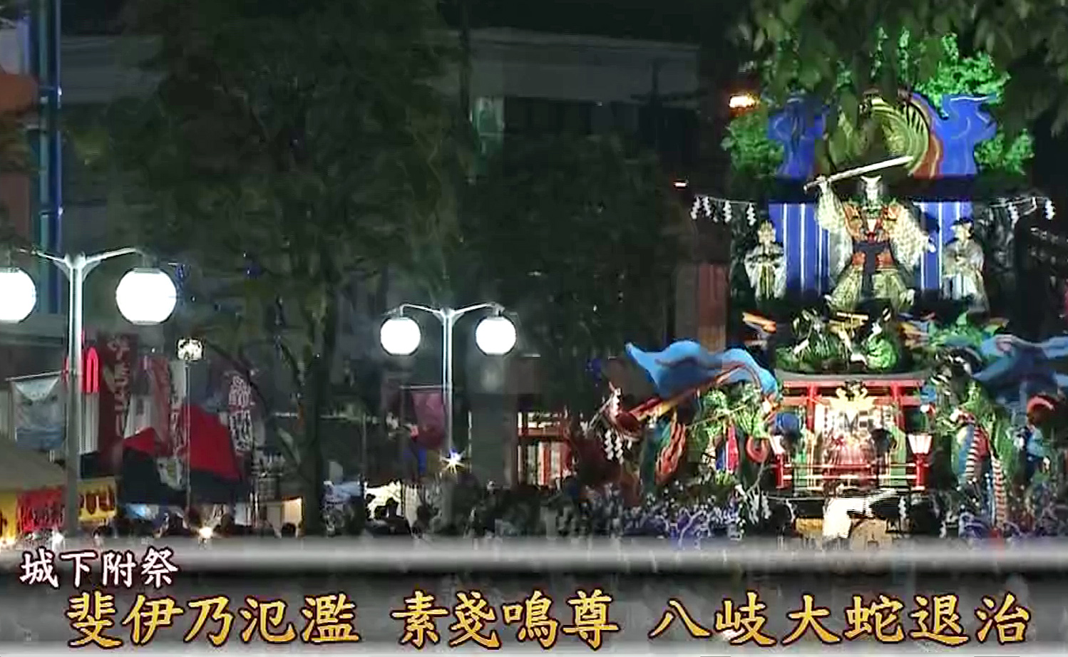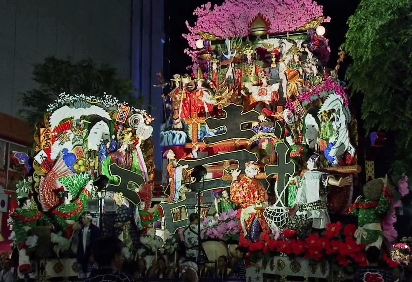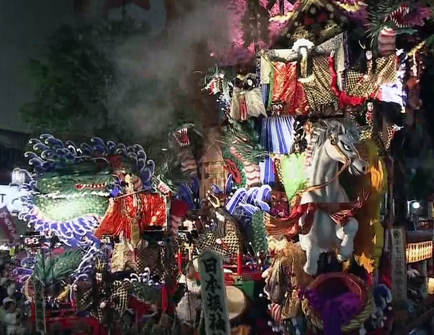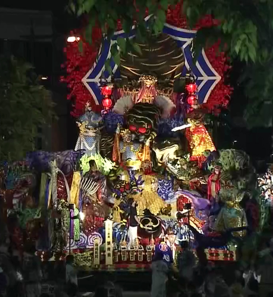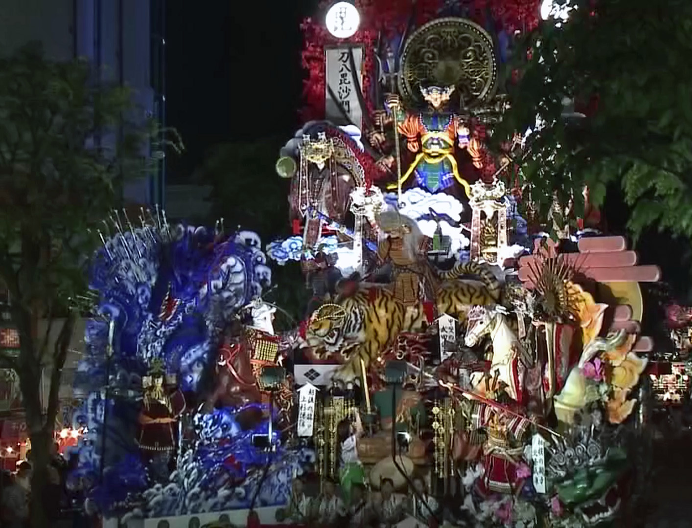 8月2日:中日(なかび)は山車の夜間合同運行、8月4日は後夜祭で山車の展示が行われる.
