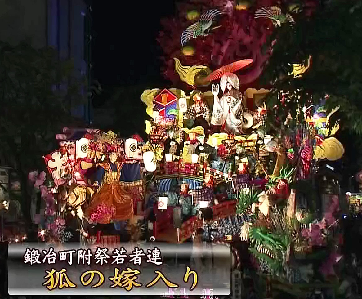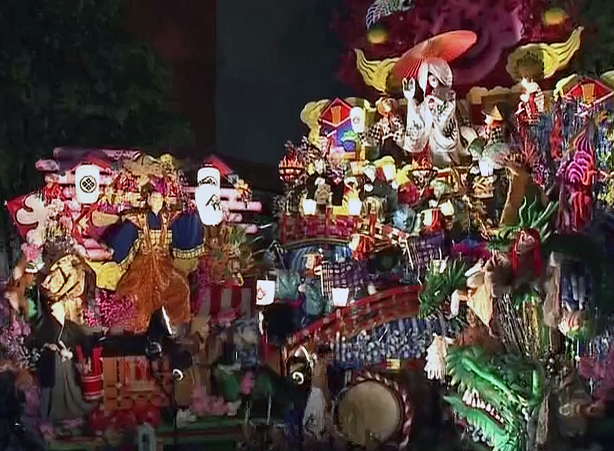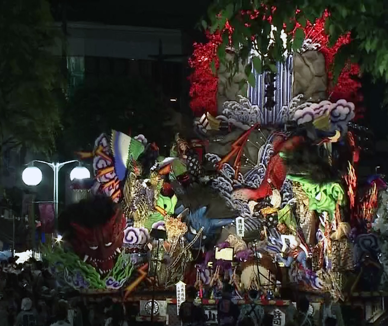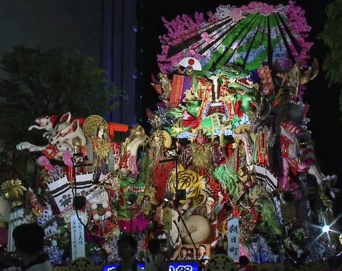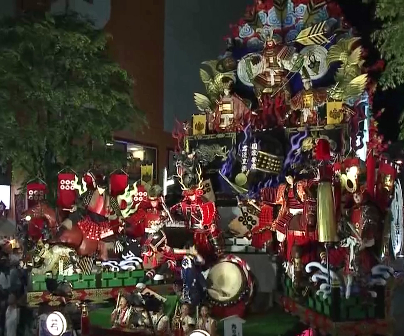 8月2日:中日(なかび)は山車の夜間合同運行、8月4日は後夜祭で山車の展示が行われる.