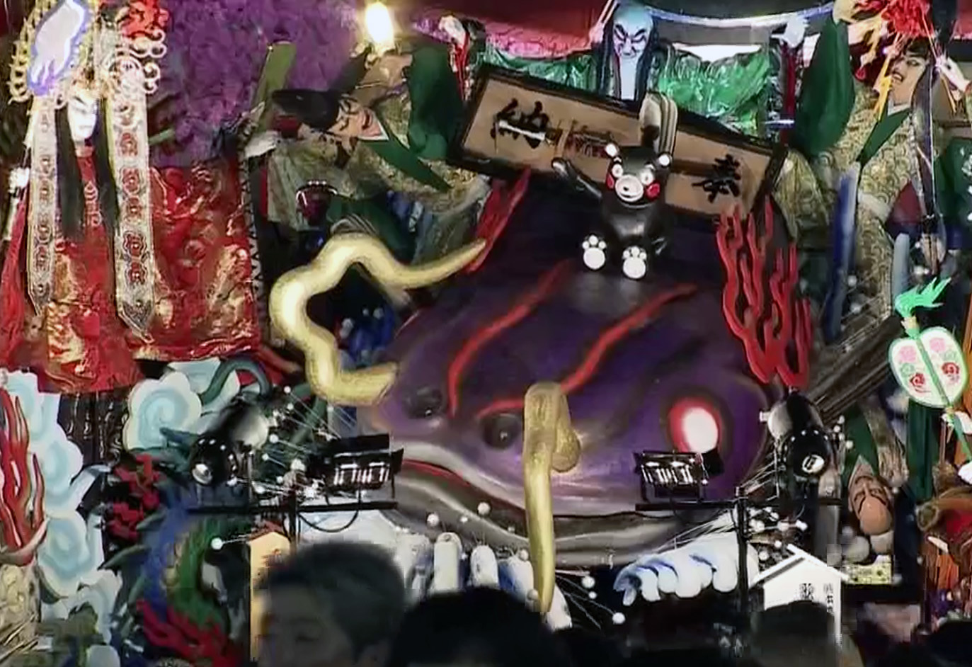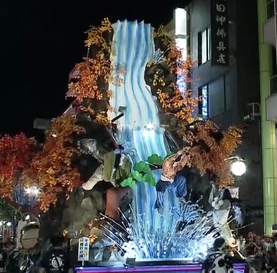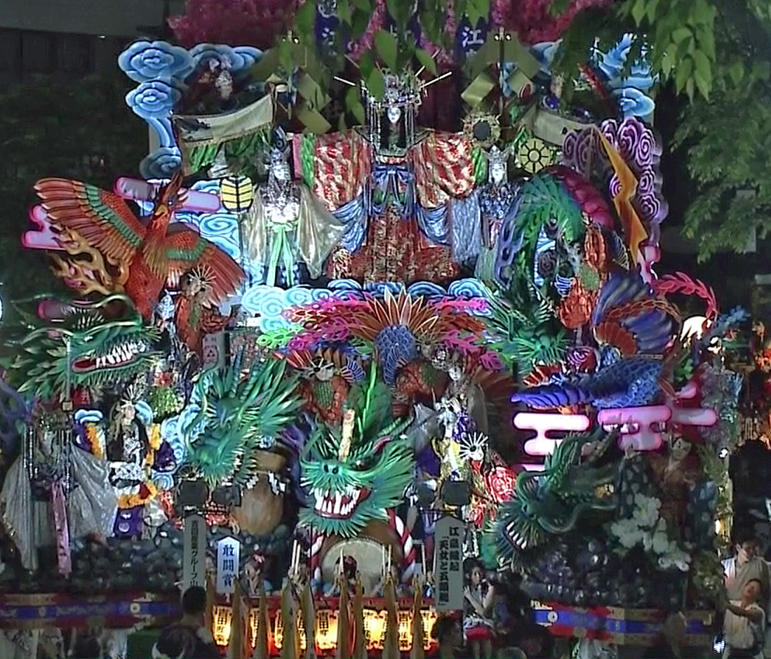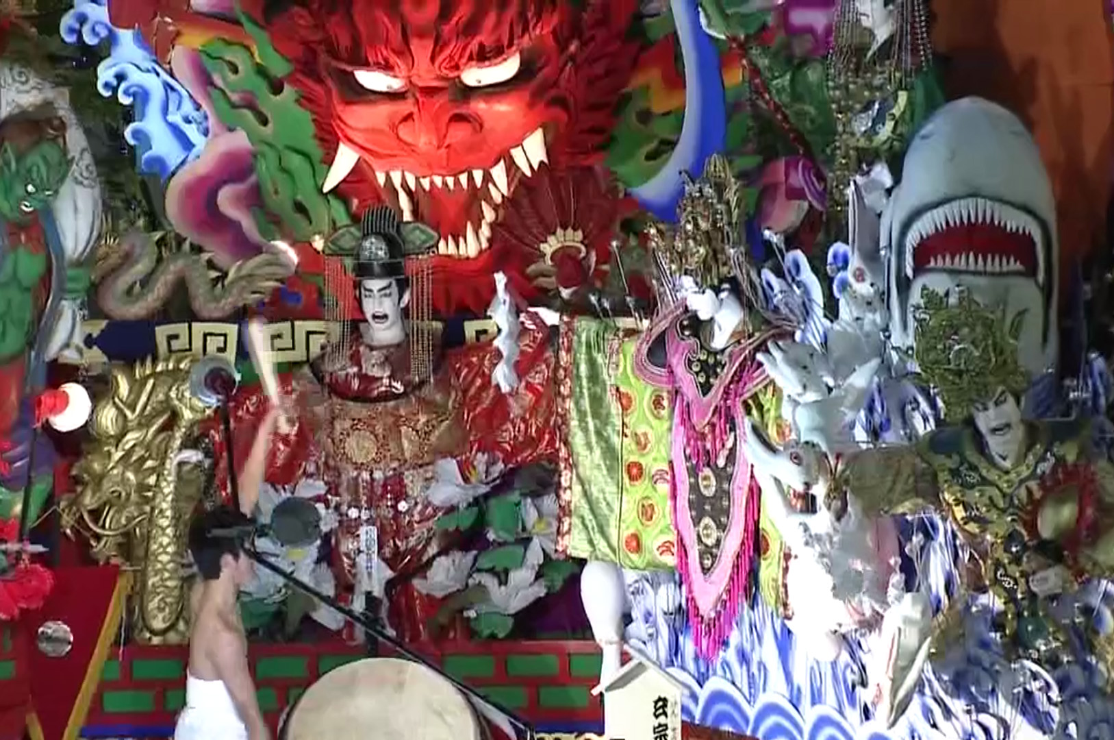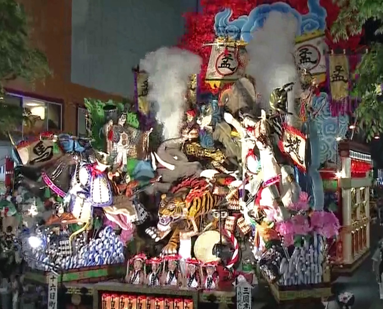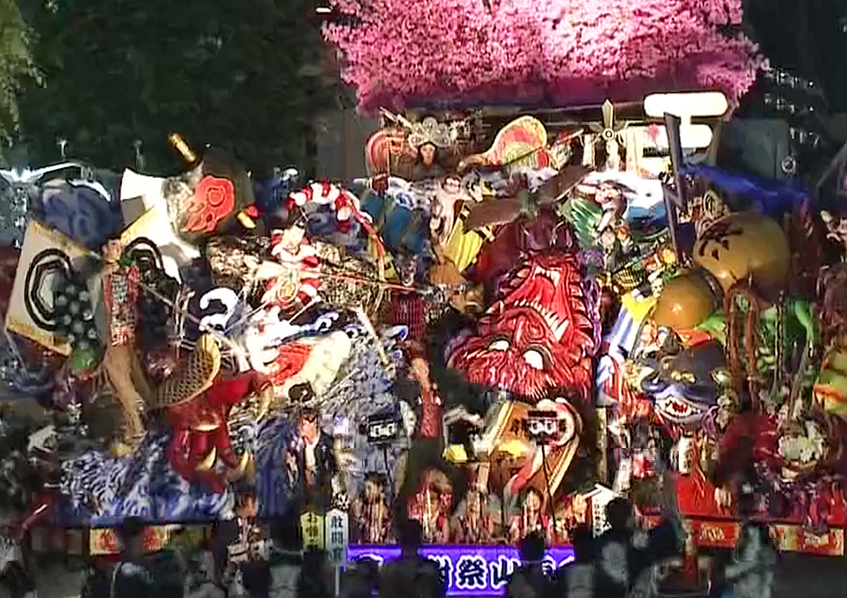 8月2日:中日(なかび)は山車の夜間合同運行、8月4日は後夜祭で山車の展示が行われる.