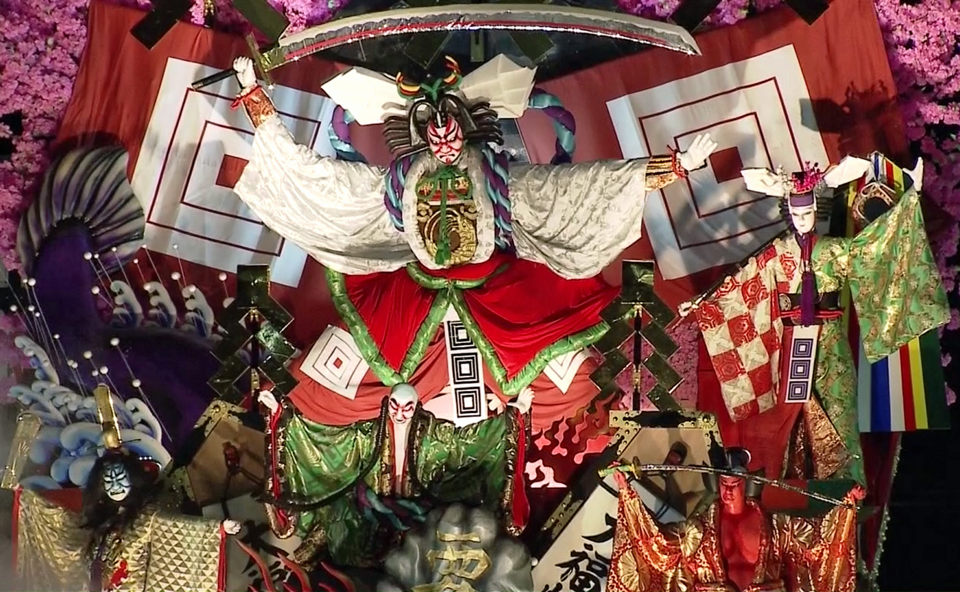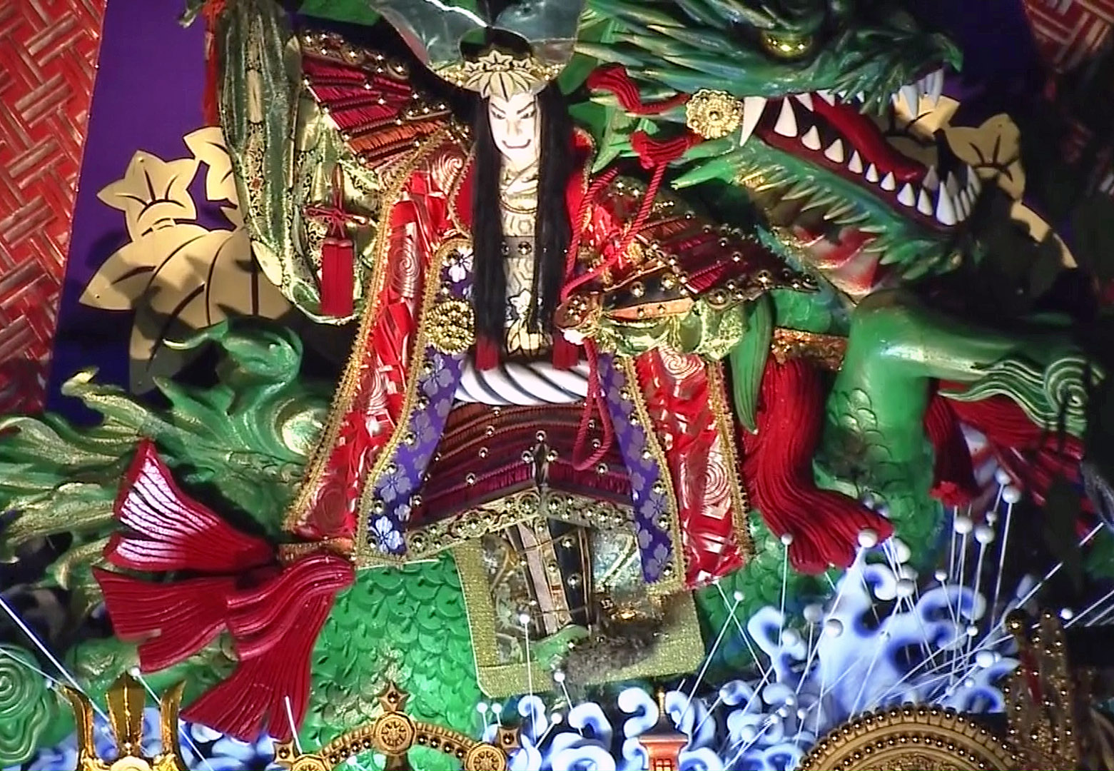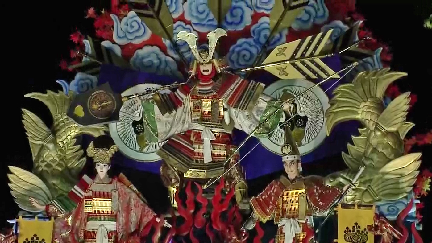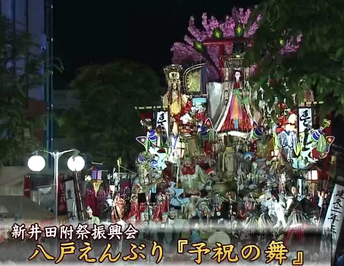 八戸三社大祭は約300年の歴史と伝統を誇る東北屈指の華やかな祭り. 「三社」とは、八戸市内の法霊山龗(おがみ)神社・長者山新羅神社・神明宮で、三社の神輿行列と市内各町の山車組の27台の華麗な人形山車が市街中心地を巡行する.