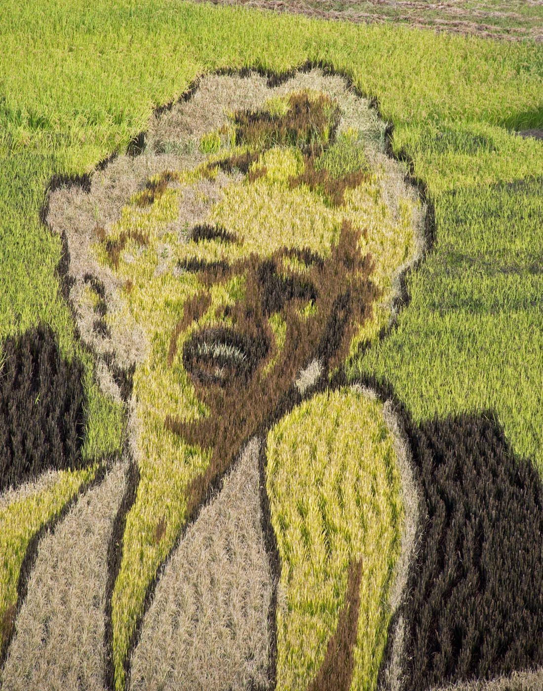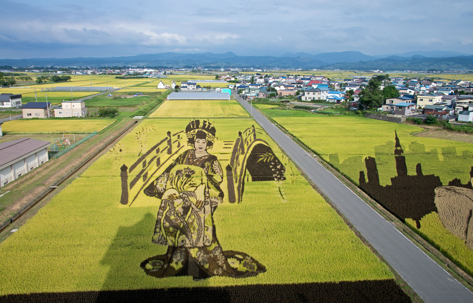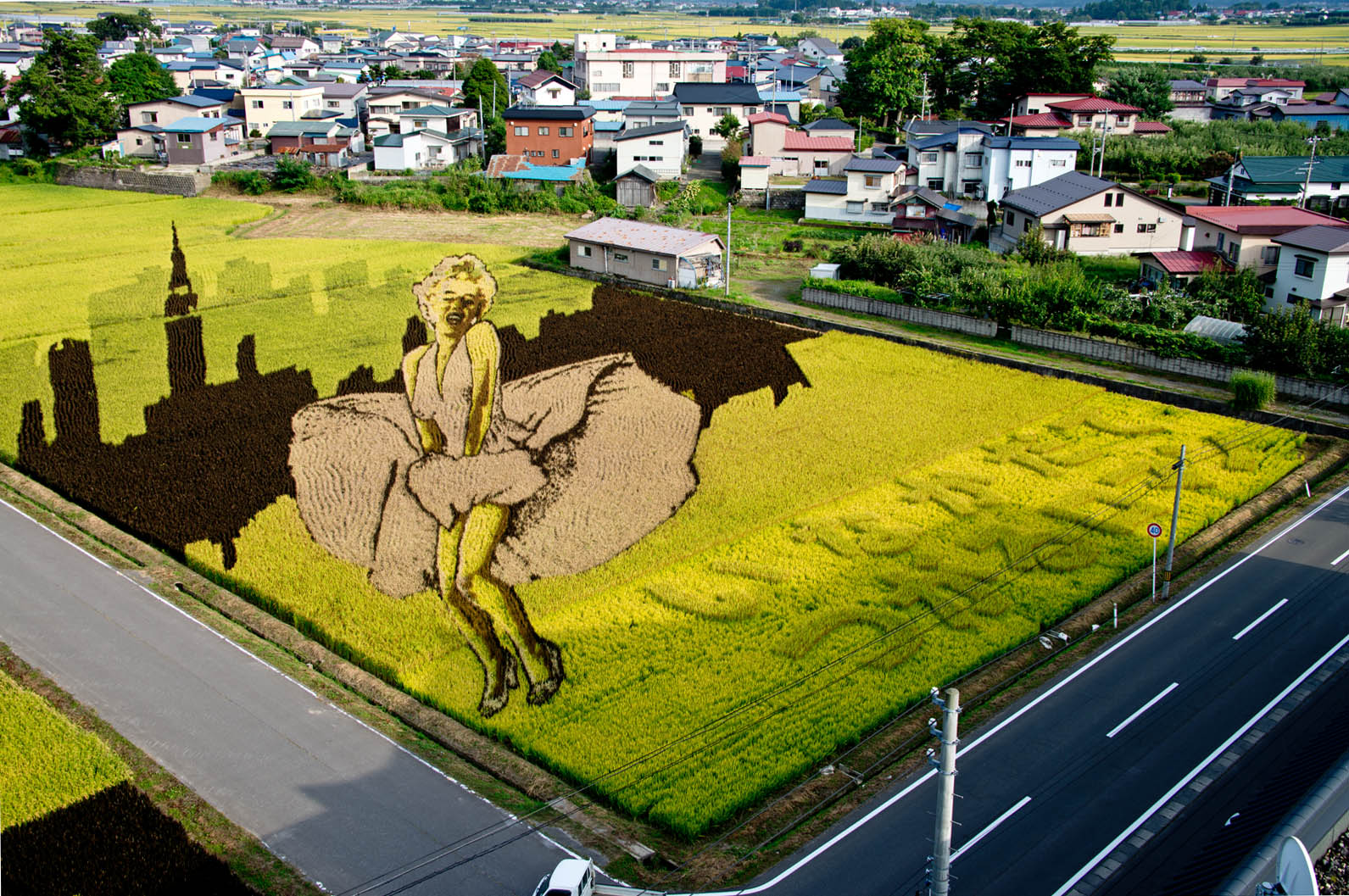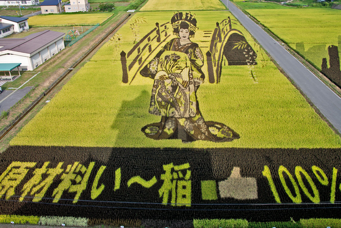 田んぼアート 花魁とハリウッドスター 田舎館村役場・東側水田(役場天守閣より見学)
