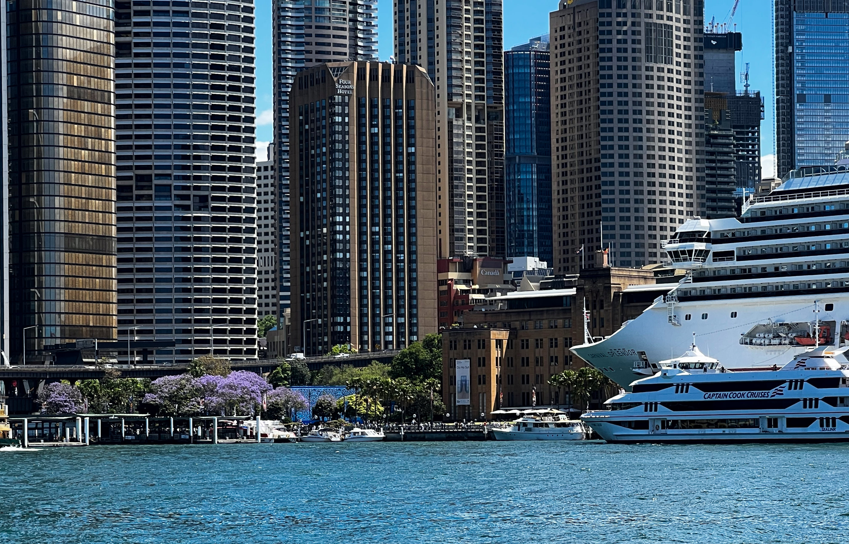 パイロン展望台からオペラハウスと巨大クルーズ船