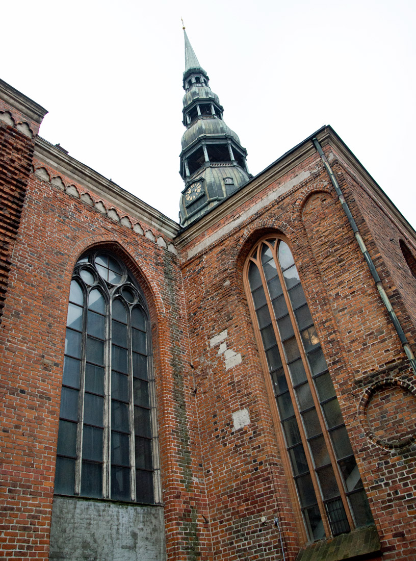 1209年時の記録によれば、教会は商人あるいはリーガの町全体の教会として建立された。教会は石造の教会として13世紀後半に建設され、その後14から15世紀に改築され、17世紀末には西側の外観が改築されてバロック様式の彫刻で装飾された現在の形になった。