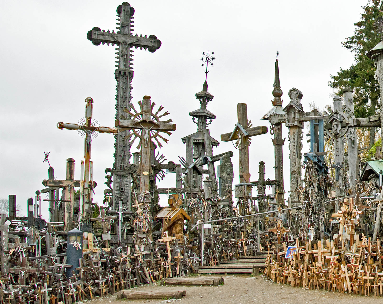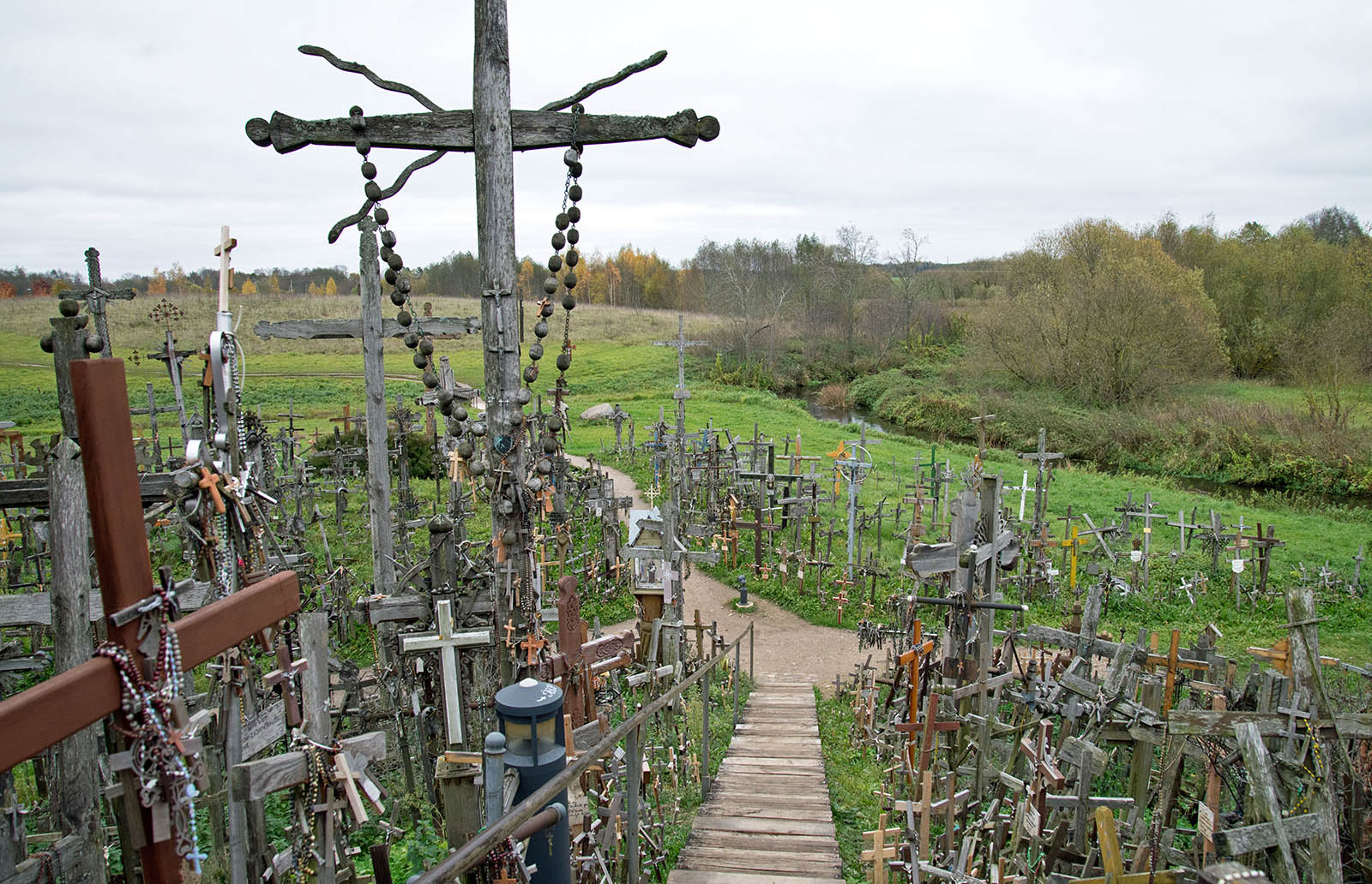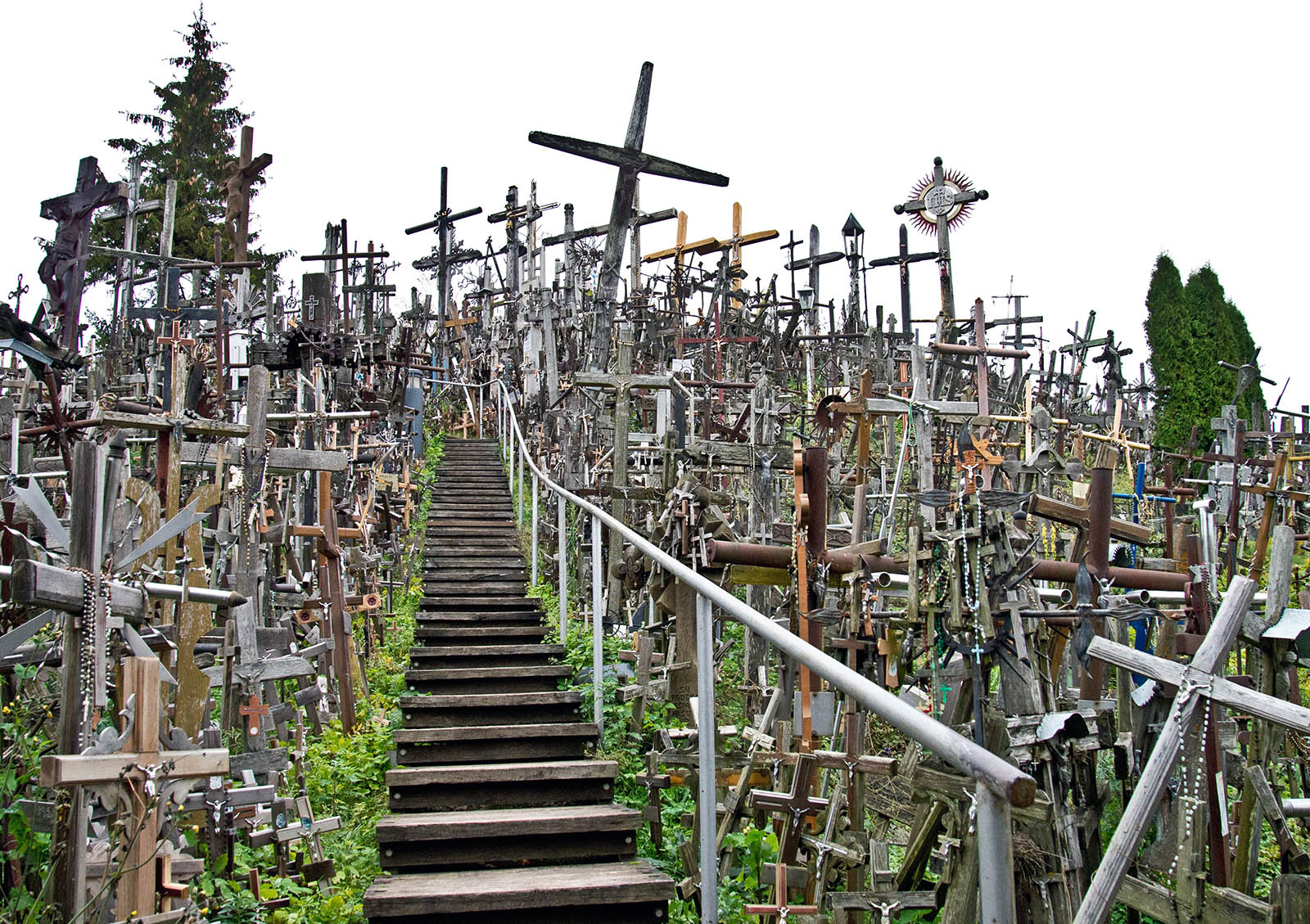 10万本以上の様々な形の十字架が立てられている. 観光客も店で十字架を買って自由にたてられる。