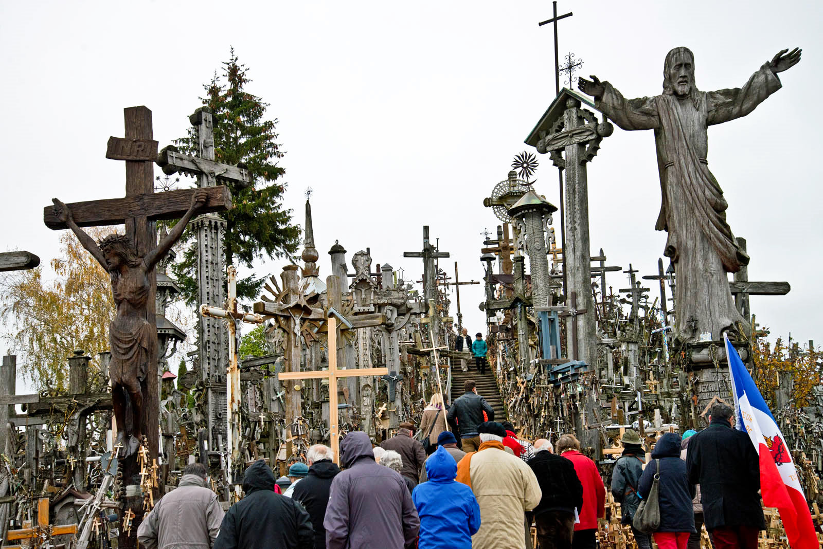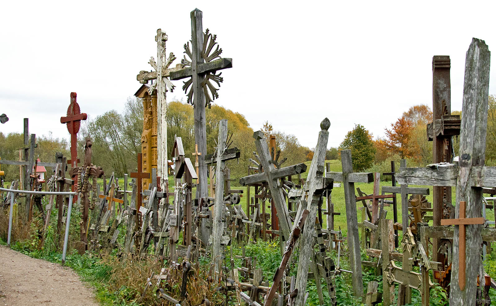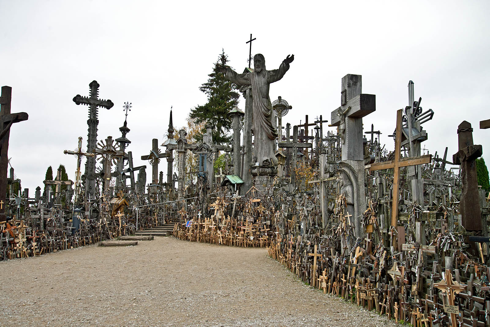 10万本以上の様々な形の十字架が立てられている. 観光客も店で十字架を買って自由にたてられる。