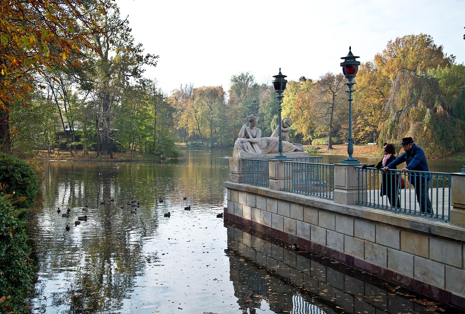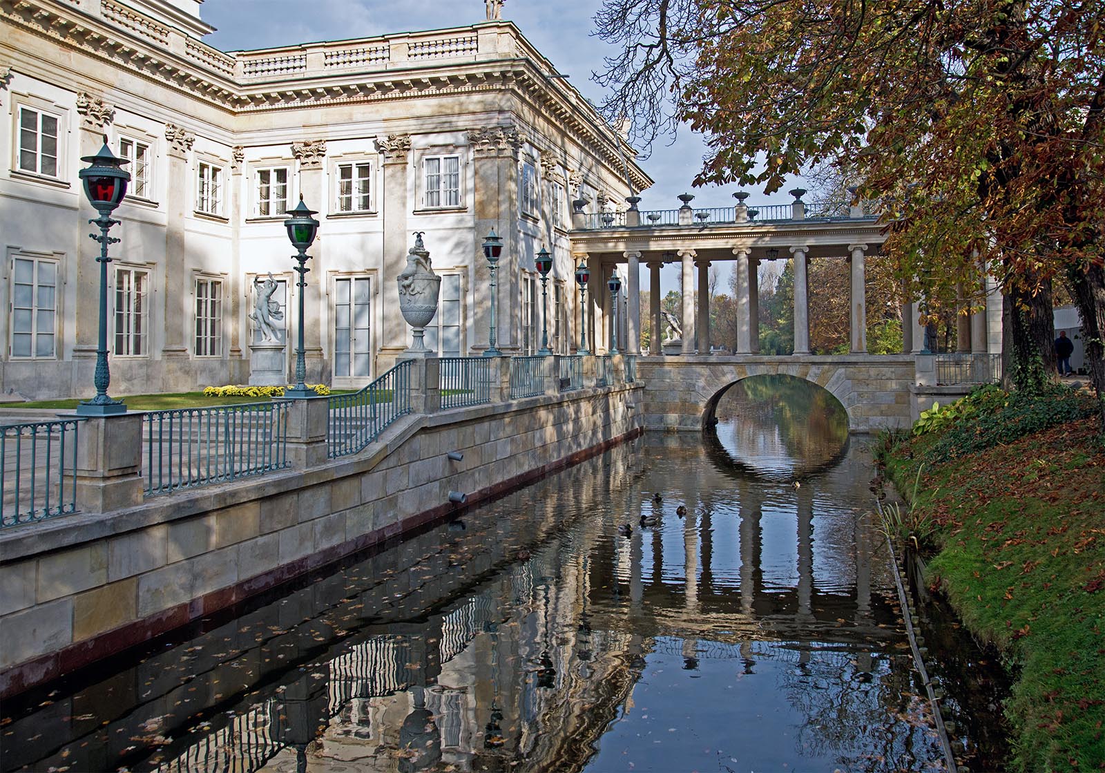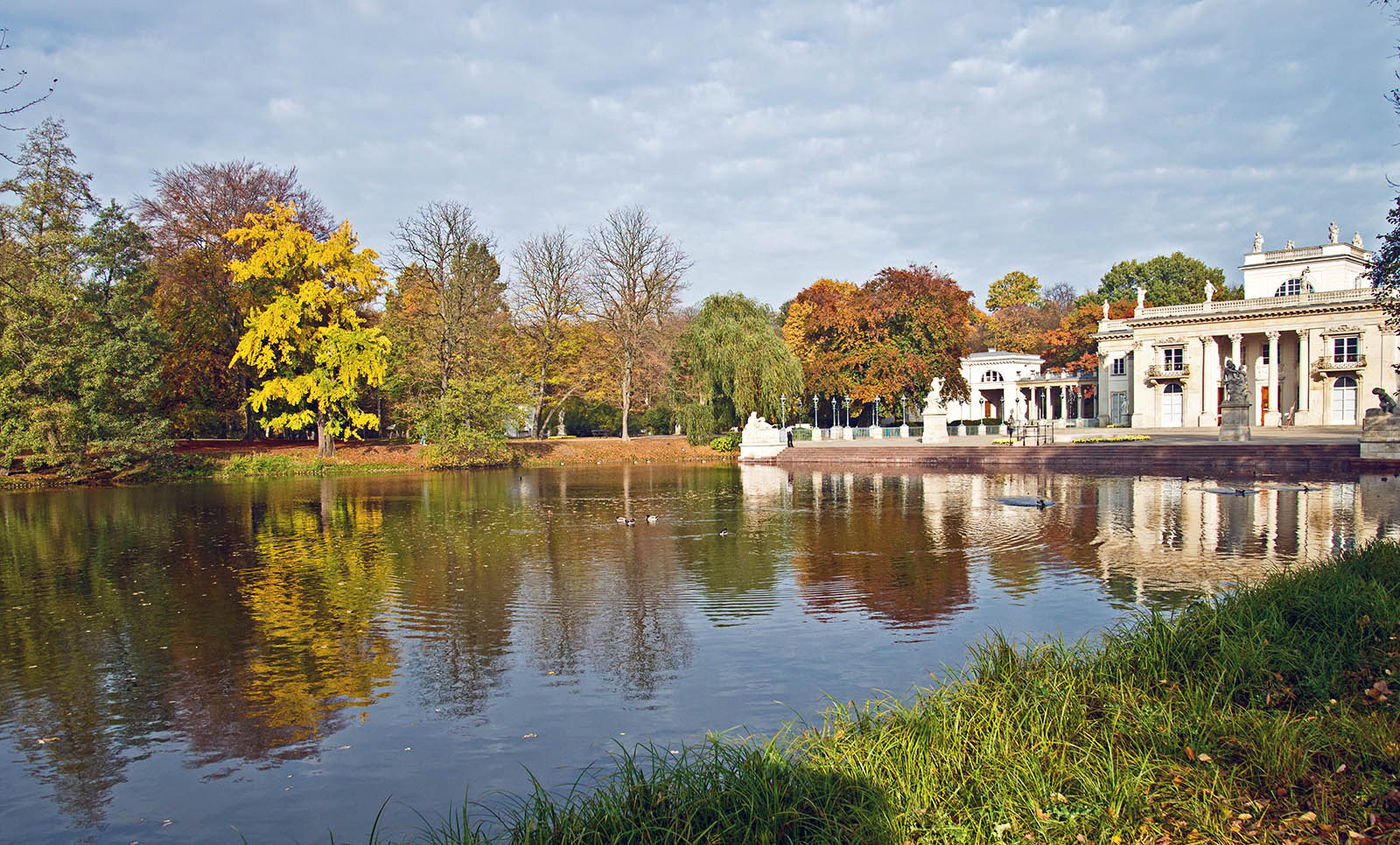 水上宮殿とワジェンキ公園は、ヨーロッパで最も美しい「宮殿と公園の景観複合体」の一つです。 スタニスワフ・ルボミルスキの支援で17世紀に造園され、今も観光客と市民を魅了し続けている。 1764年からスタニスワフ・アウグスト・ポニャトフスキ国王(1732〜98)の努力で約30年の工事で、 その総面積約80haに国王の宮殿が建設され,公園も整備された。
