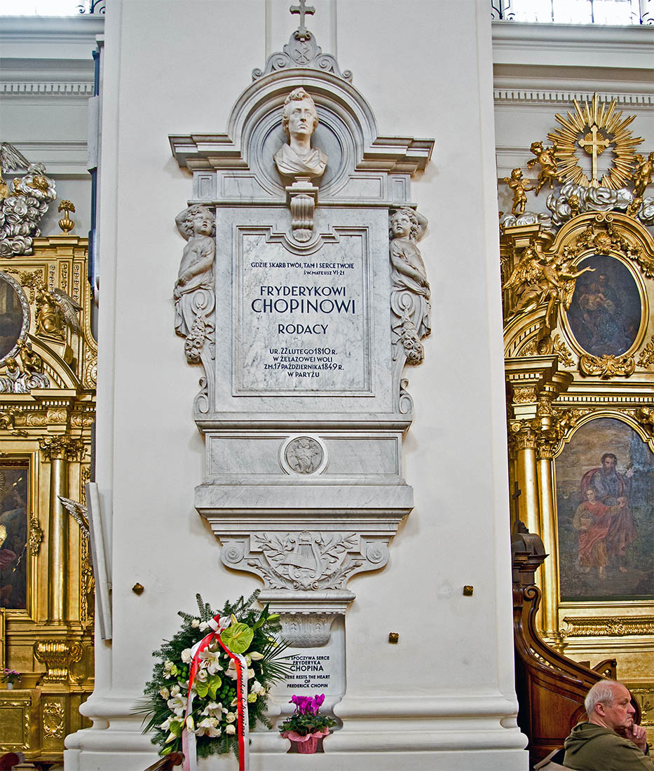 遺言によりショパンの心臓が眠る柱。祖国に戻りたい思いで。