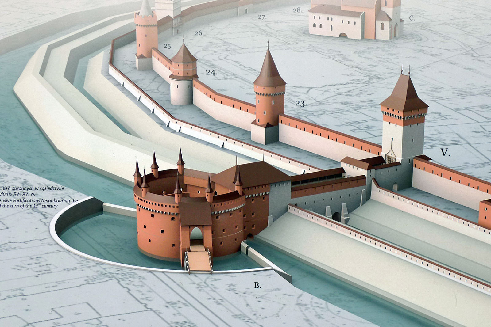 旧市街北端部にある赤レンガ造りのゴシック様式の砦。城壁のフロリアンスカ門の防備のため15世紀末に建造。
