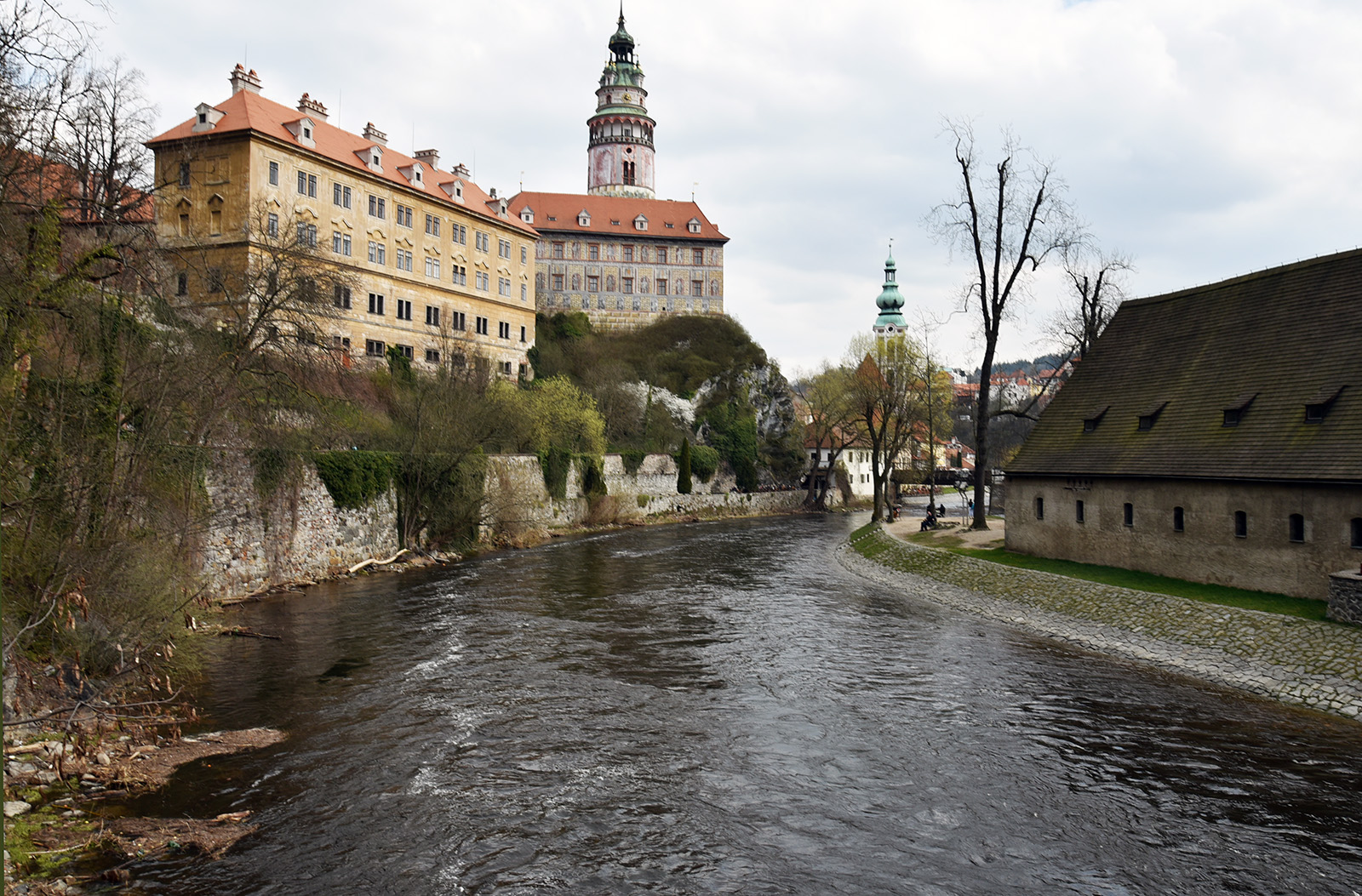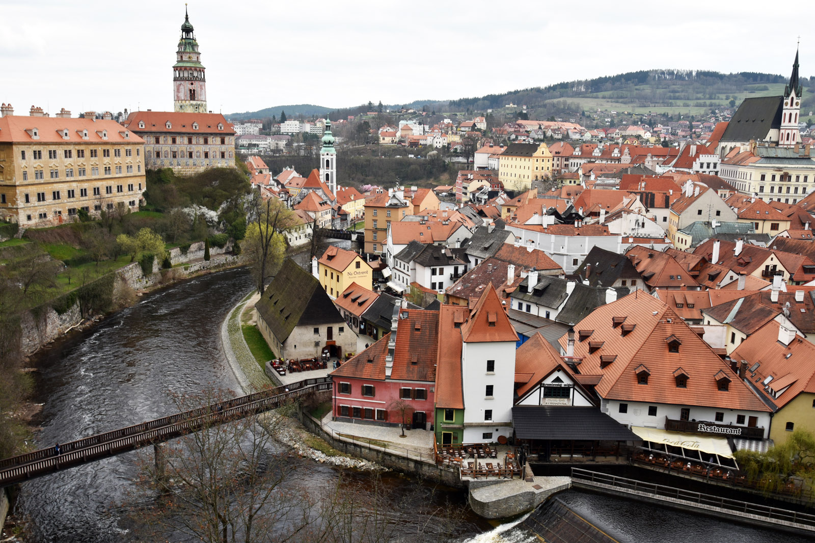 ヴルタヴァ川に囲まれた市街 (城の展望ポイントから)