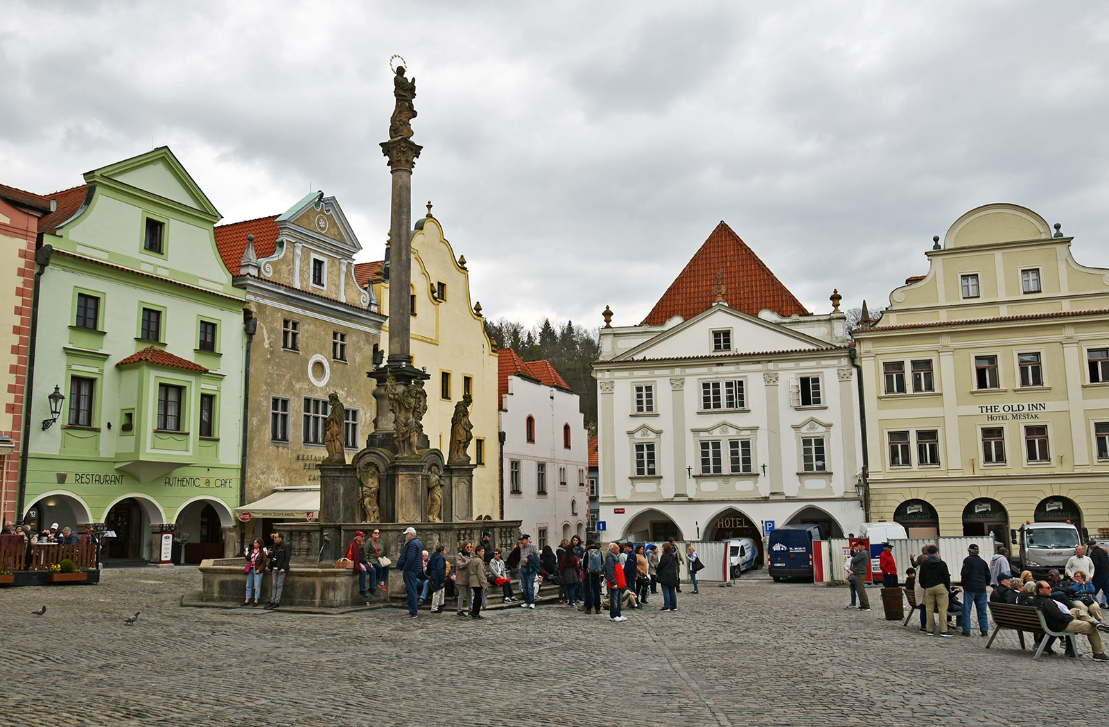 スヴォルノスティ広場に出る 聖母マリアの柱、下はバロック様式の噴水