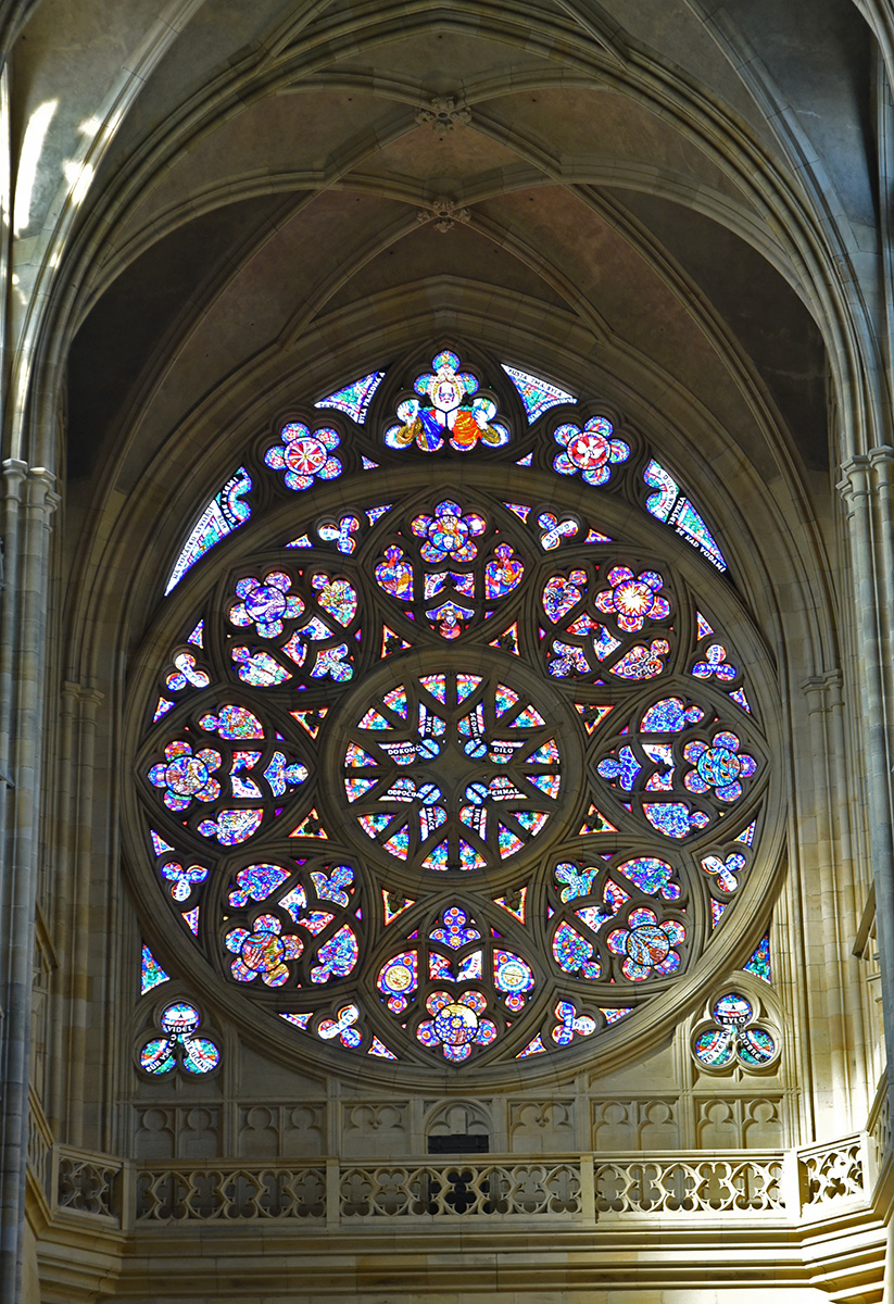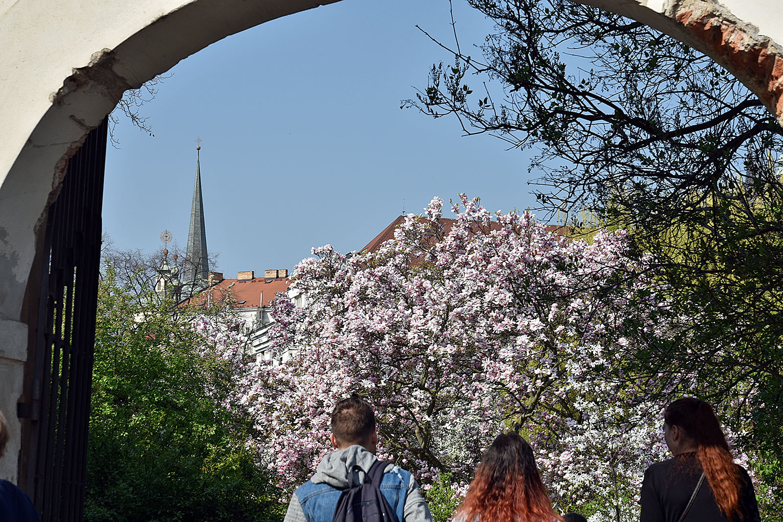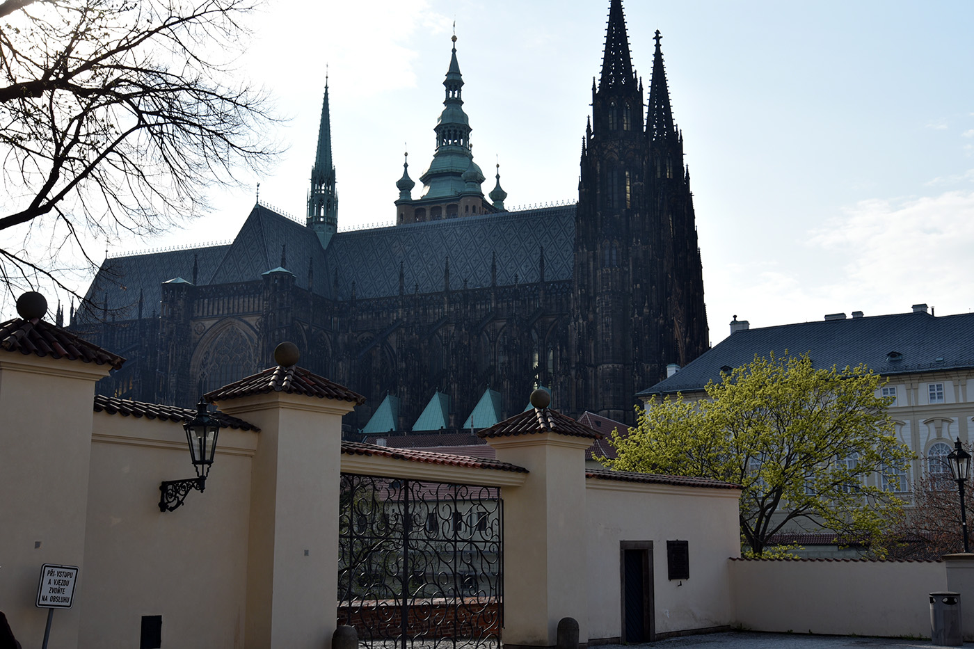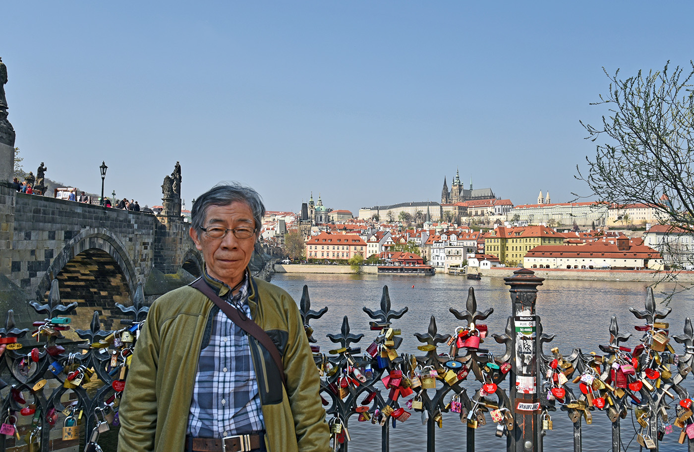 聖イジー教会のベランダから マーネス橋と旧市街の教会、旧市庁舎時計塔