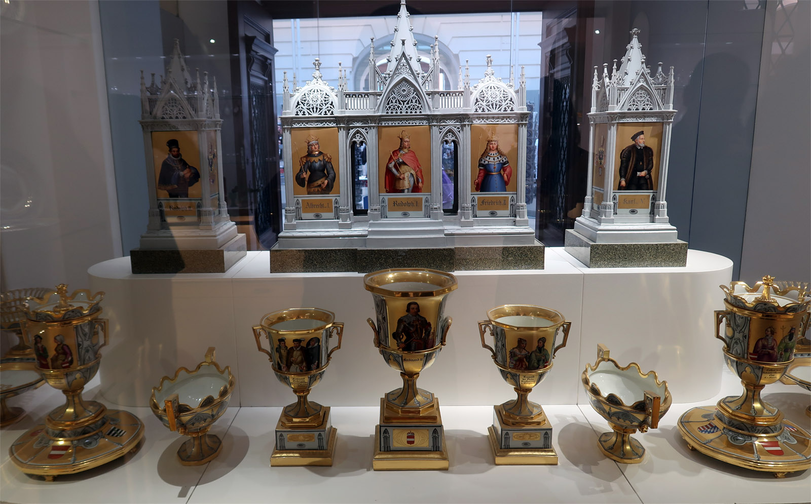 シシー博物館はホーフブルク宮殿の一角にあり、シシーの私物やデスマスクなどが展示されている。バイエルンの森で無邪気に遊んだ子どもの頃の様子、結婚後に所有した華やかなドレスや装飾品の数々、そして旅行の際に乗った列車の車両の再現などがあり、シシーの面影や人物像にも触れられる構成。宮廷で使われた食器やカトラリーを展示した銀器博物館もあり、栄華を見ることができる。 |