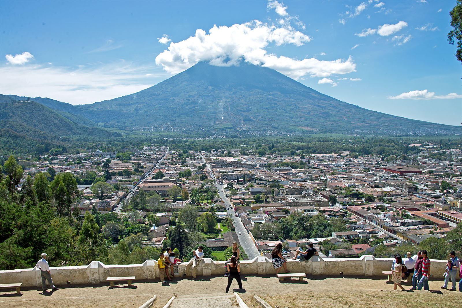 アンティグア市街を一望でき、正面には美しい形のアグア火山が