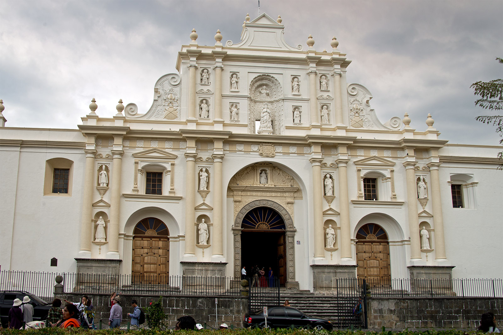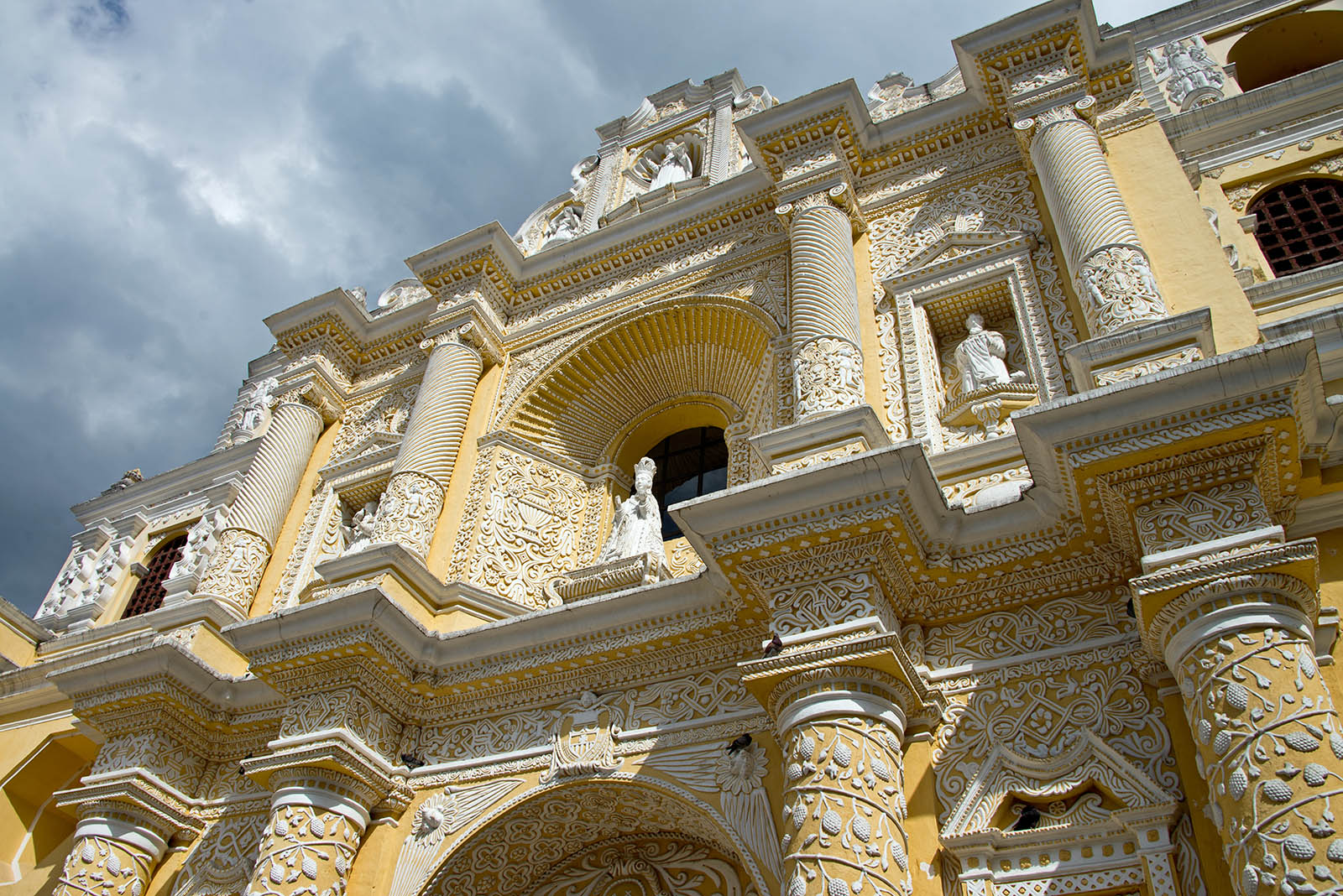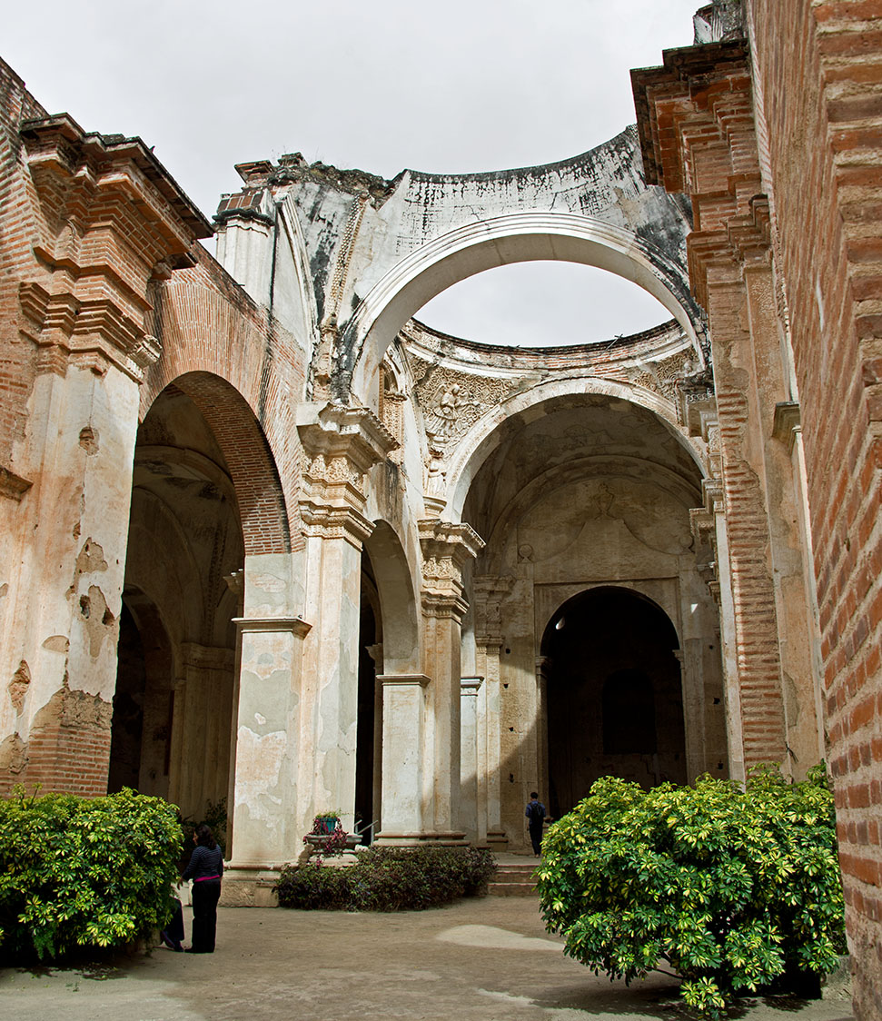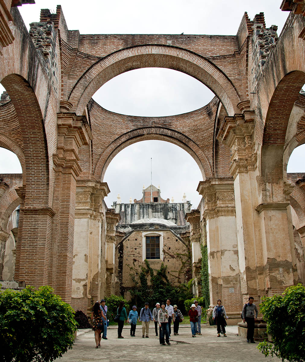 この都市はアグア火山などに囲まれ、大聖堂を中心とする碁盤の目のような区画に整備された市街には、石畳の道が走り、旧グアテマラ総督府、ラ・メルセー聖堂、修道院が配置され、コロニアル・バロック様式の色彩豊かな建物が立ちぶ美しい街である。1979年世界遺産に登録された。