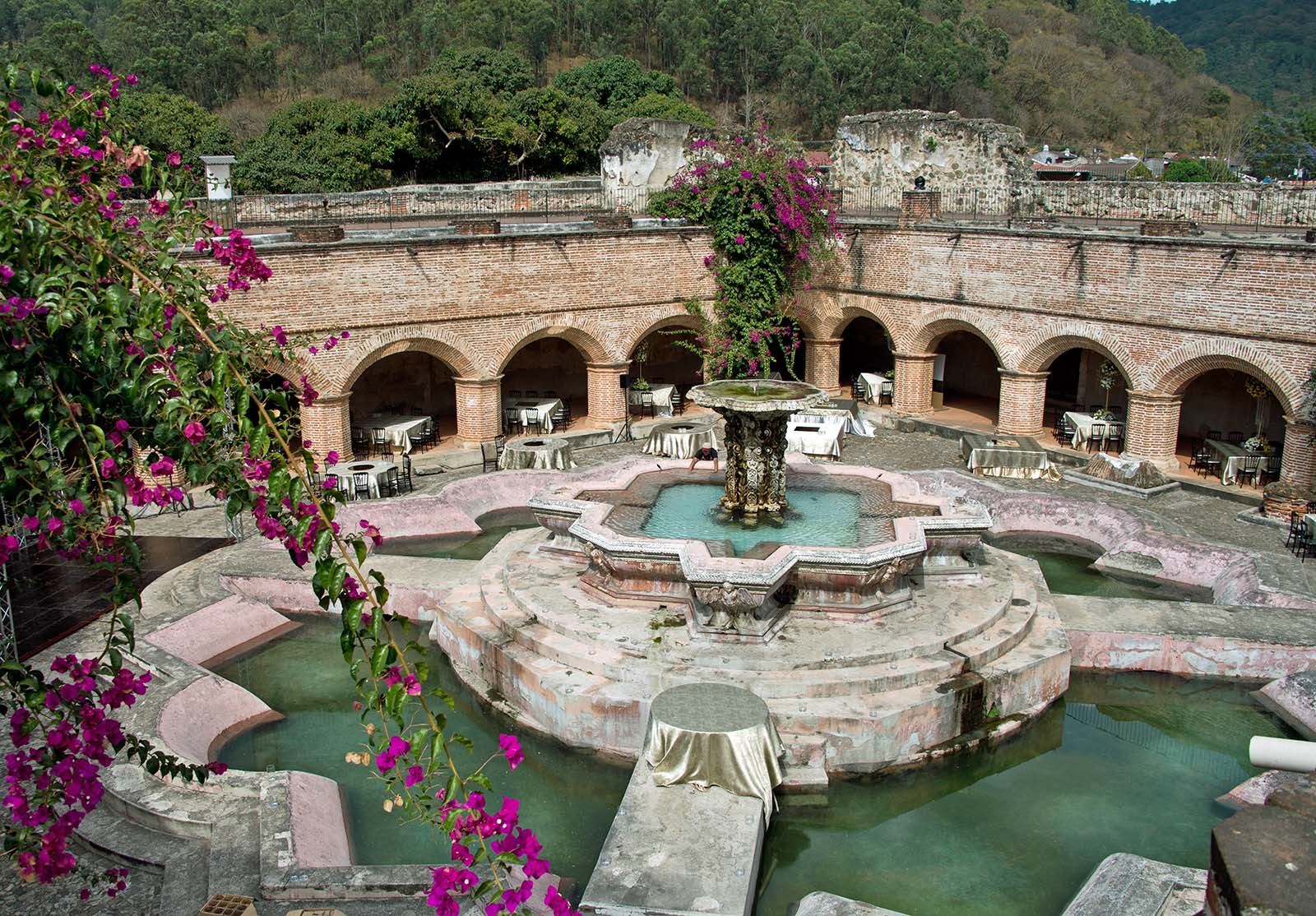 中庭にある中米一の噴水 ブーゲンビリアが咲く