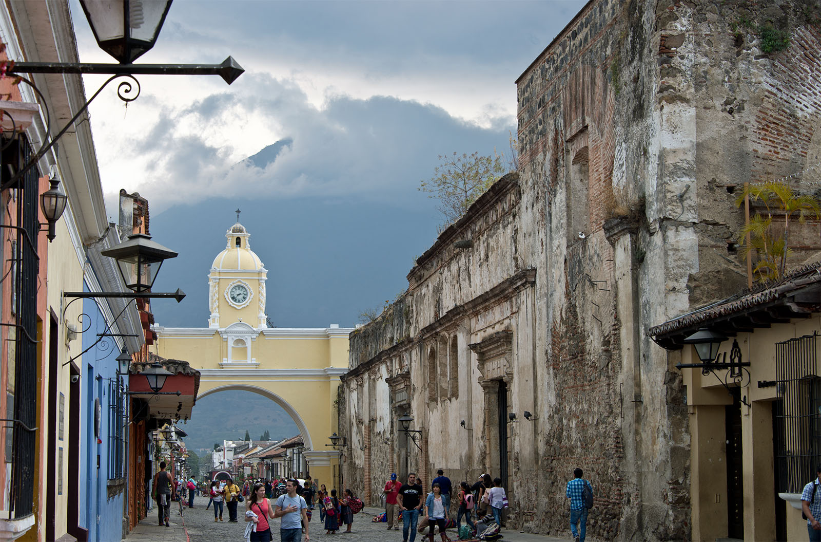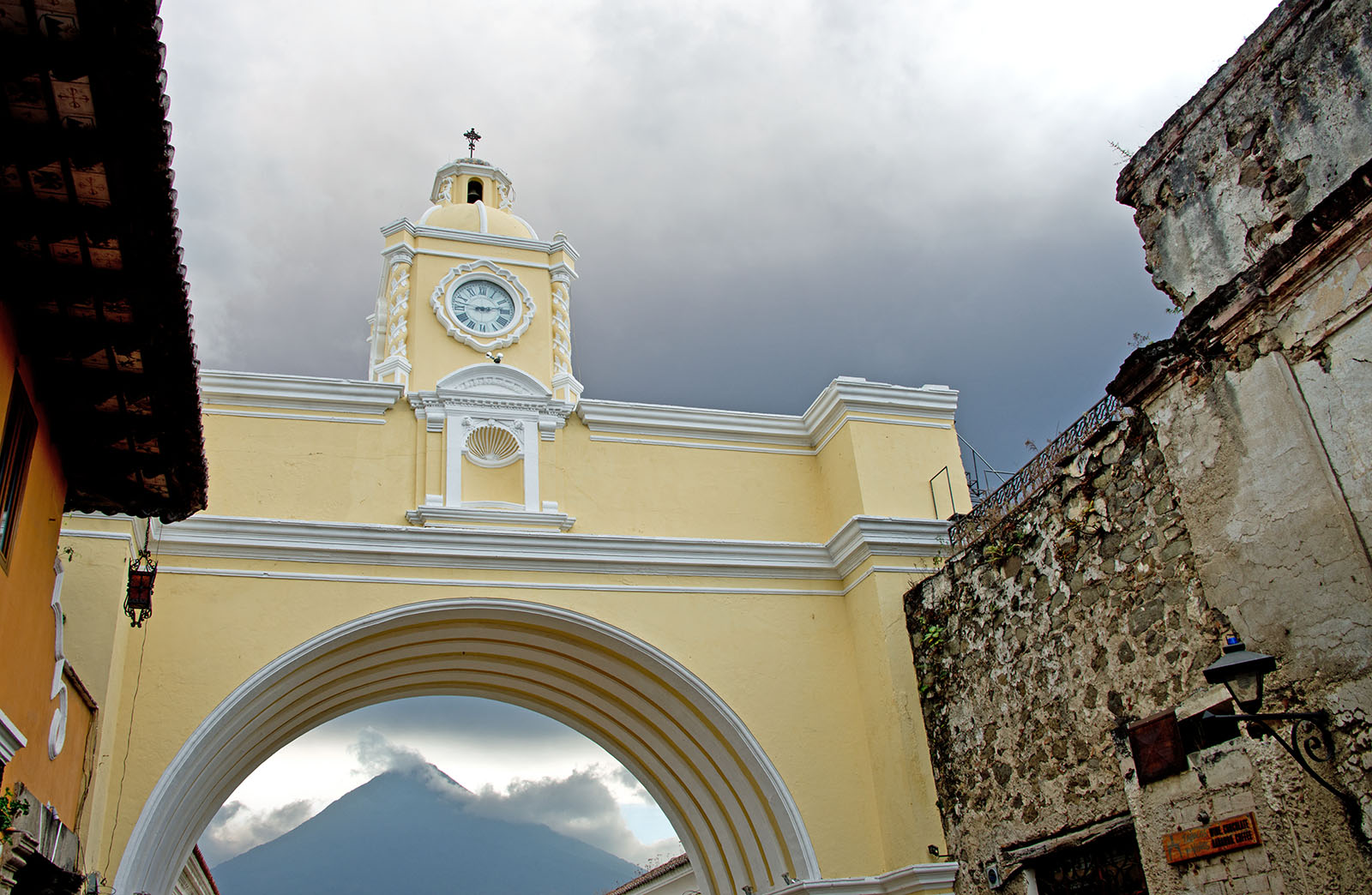 アルコ通りの時計台とアグア火山