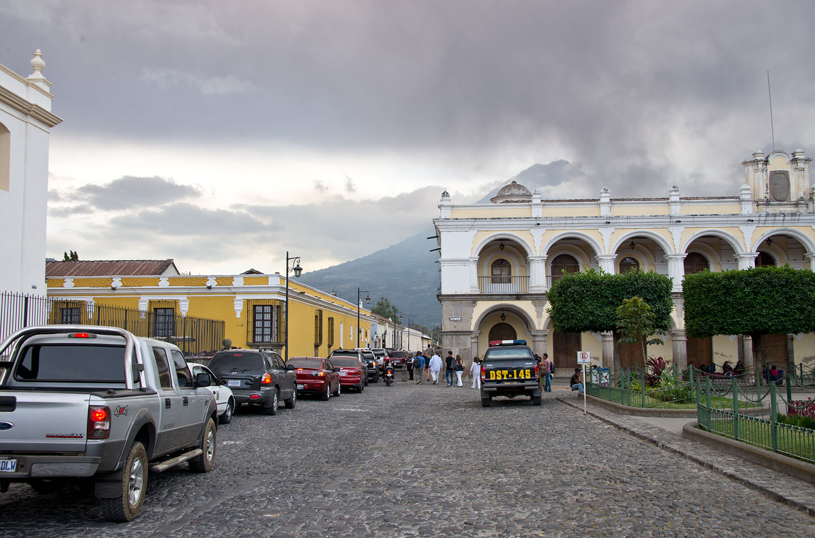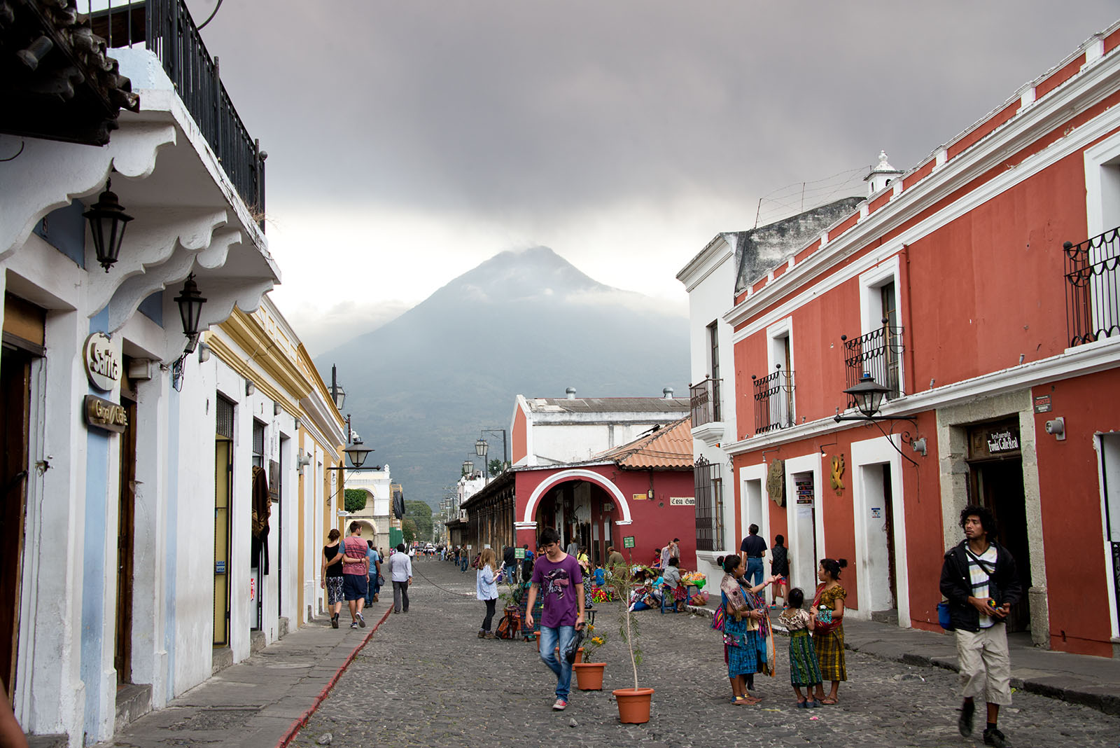 通りの先にはアグア火山