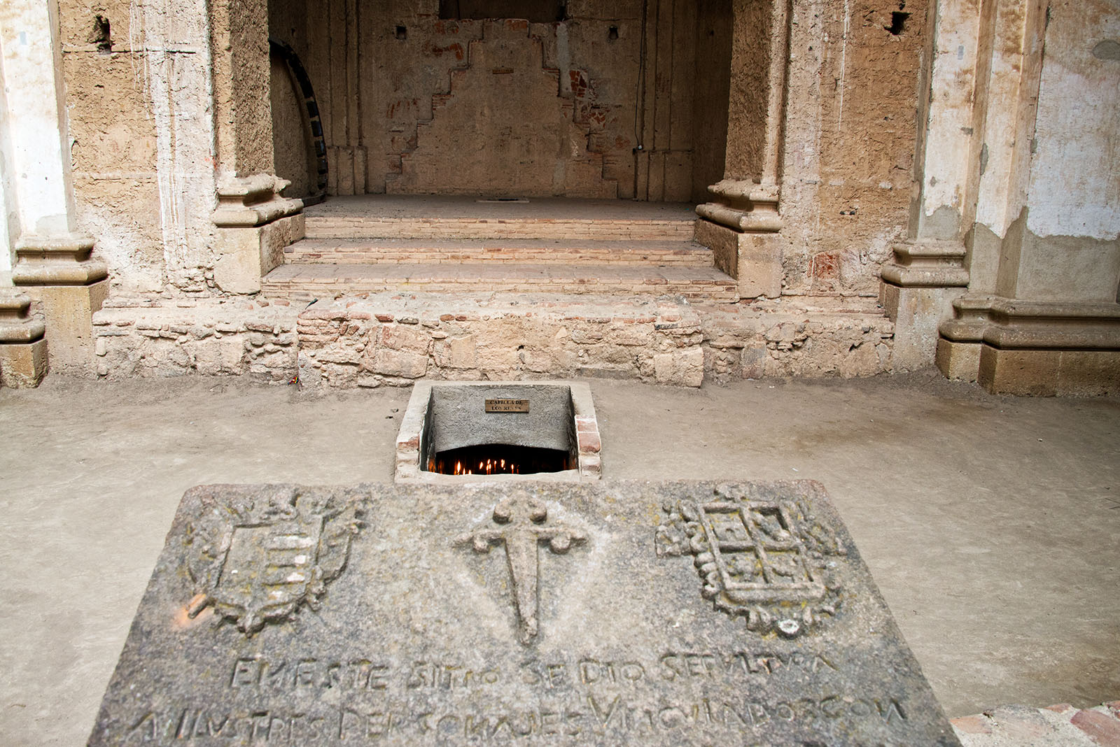 1541年に建設, 1717年の大地震で崩壊, 1773年のサンタ・マルタ地震の後,道路側のみが再建された。