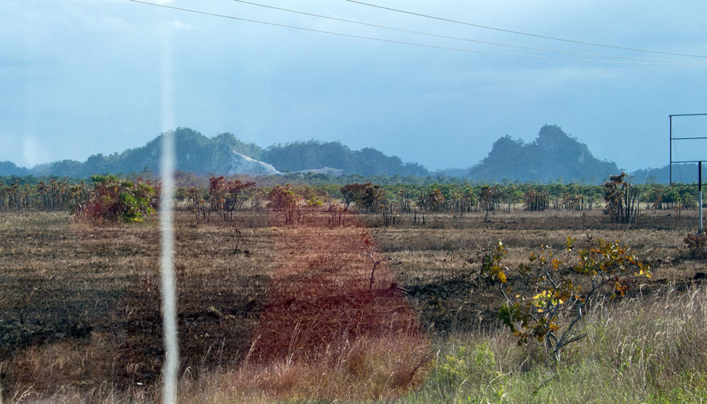 遠くの山が眠れる巨人に見える 動物園からの帰路のバスで撮影