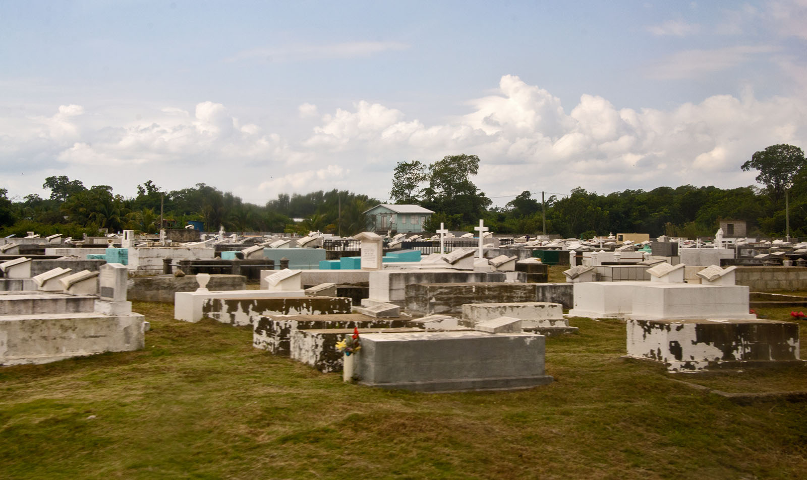 ベリーズの墓は土葬で大きい 真ん中を道路が走る