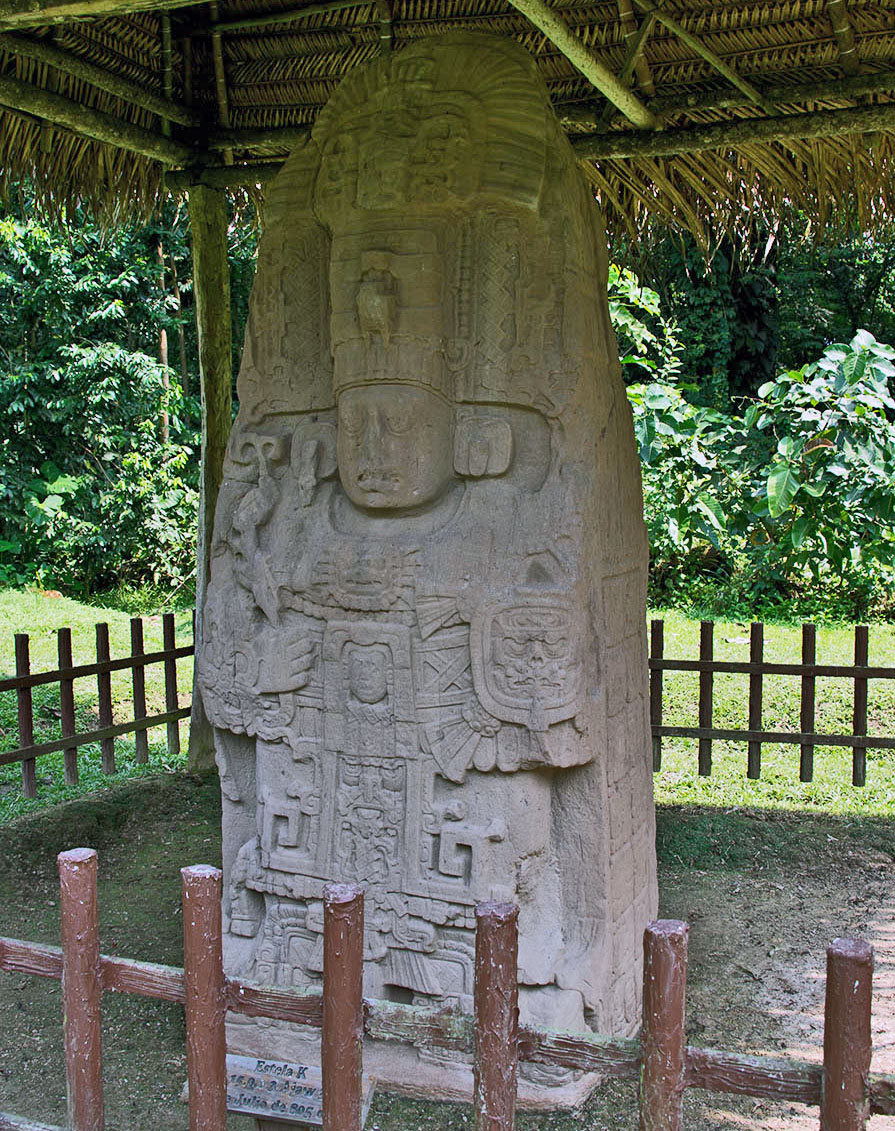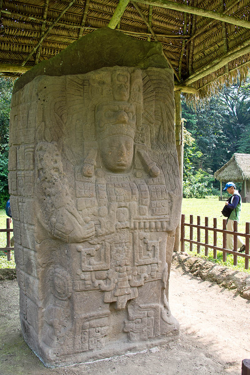 キリグアの石碑は顔の彫りが深いが体は平面的であり,コパンの高浮き彫りと比較すると技術的に負けている。コパンの18ウサギ王とカック・ティリュウの戦いはここにもあったようです。