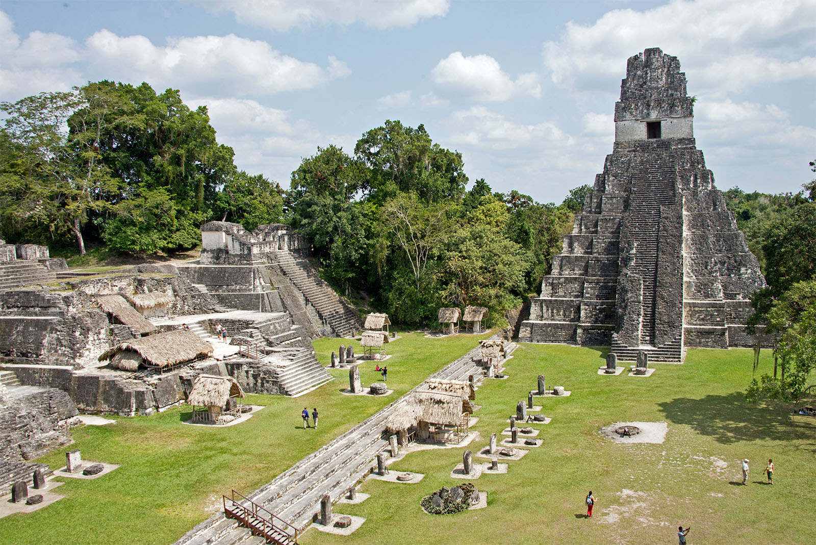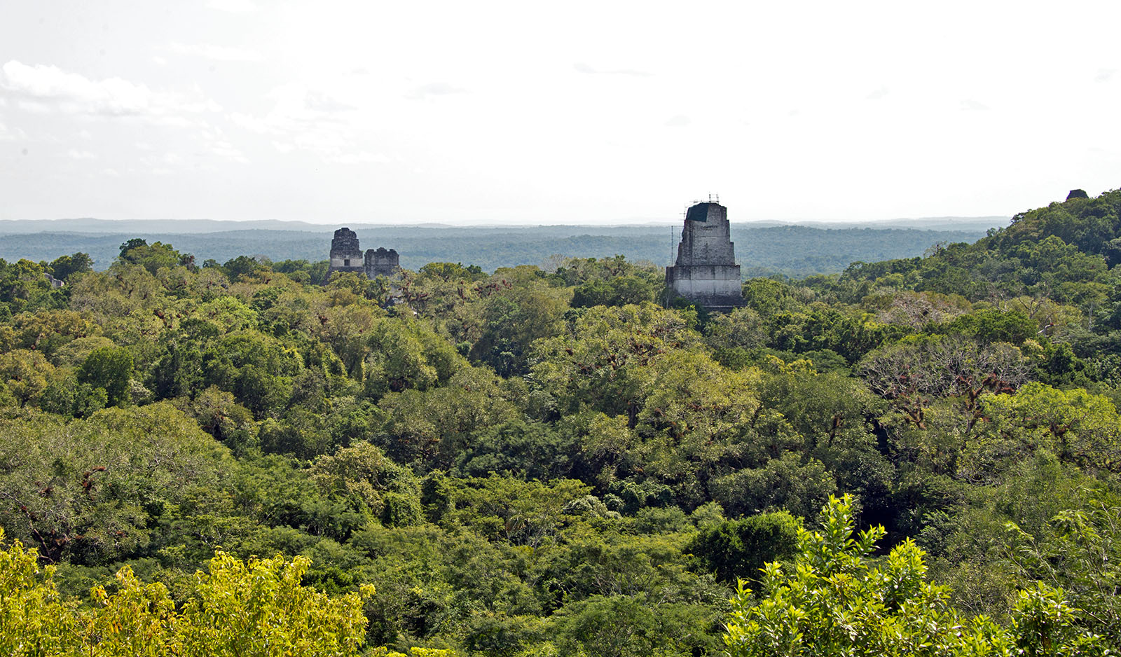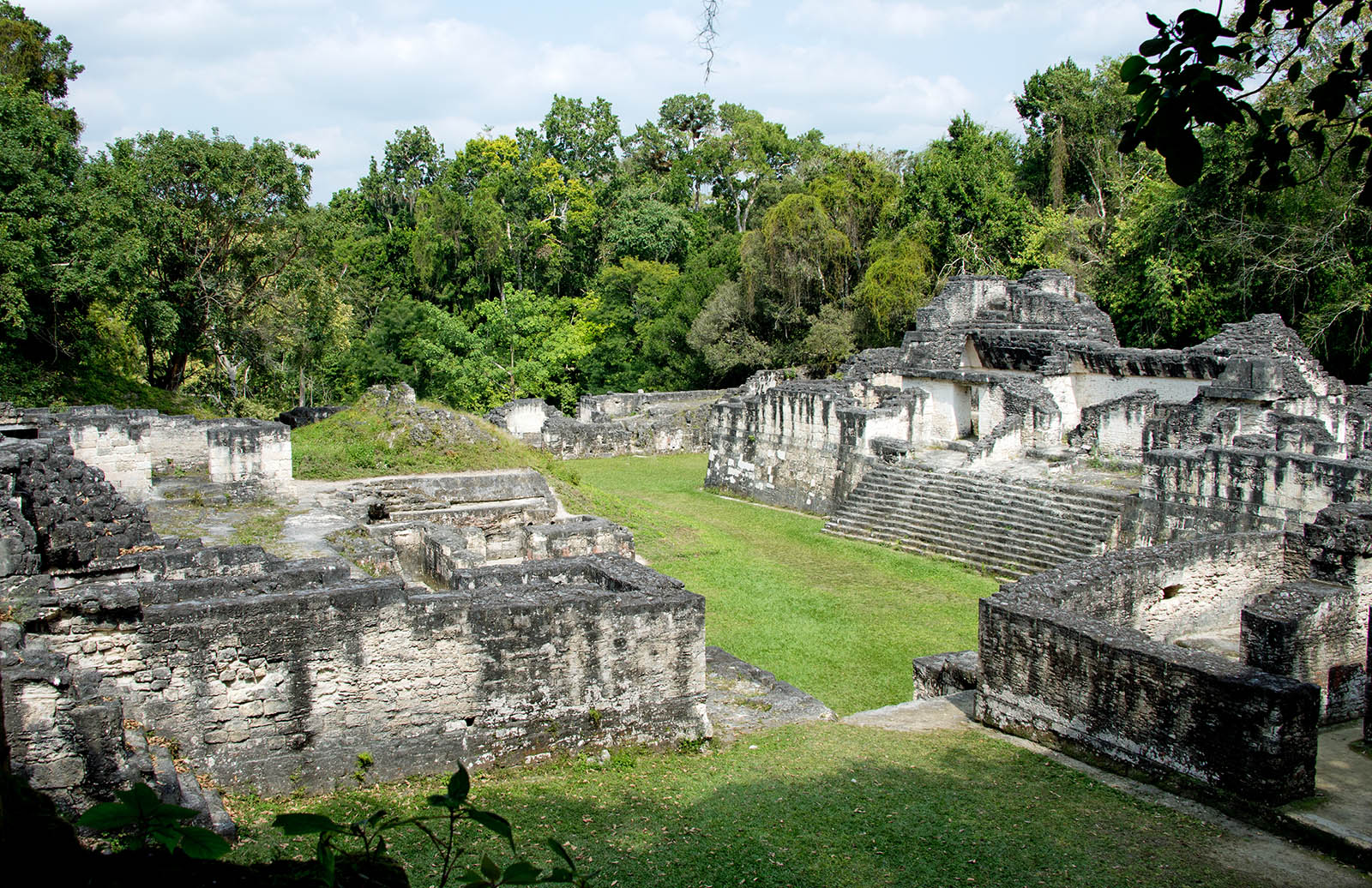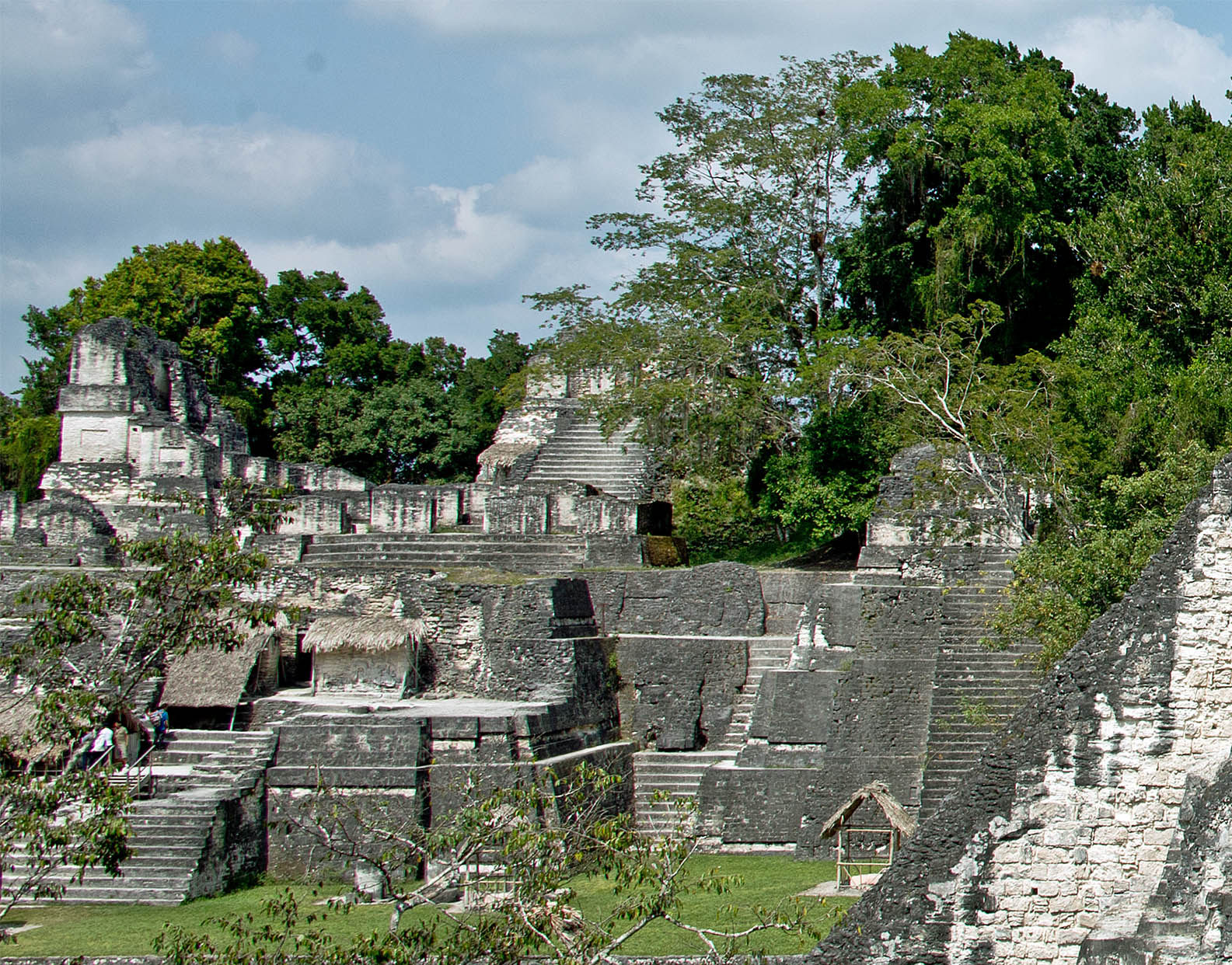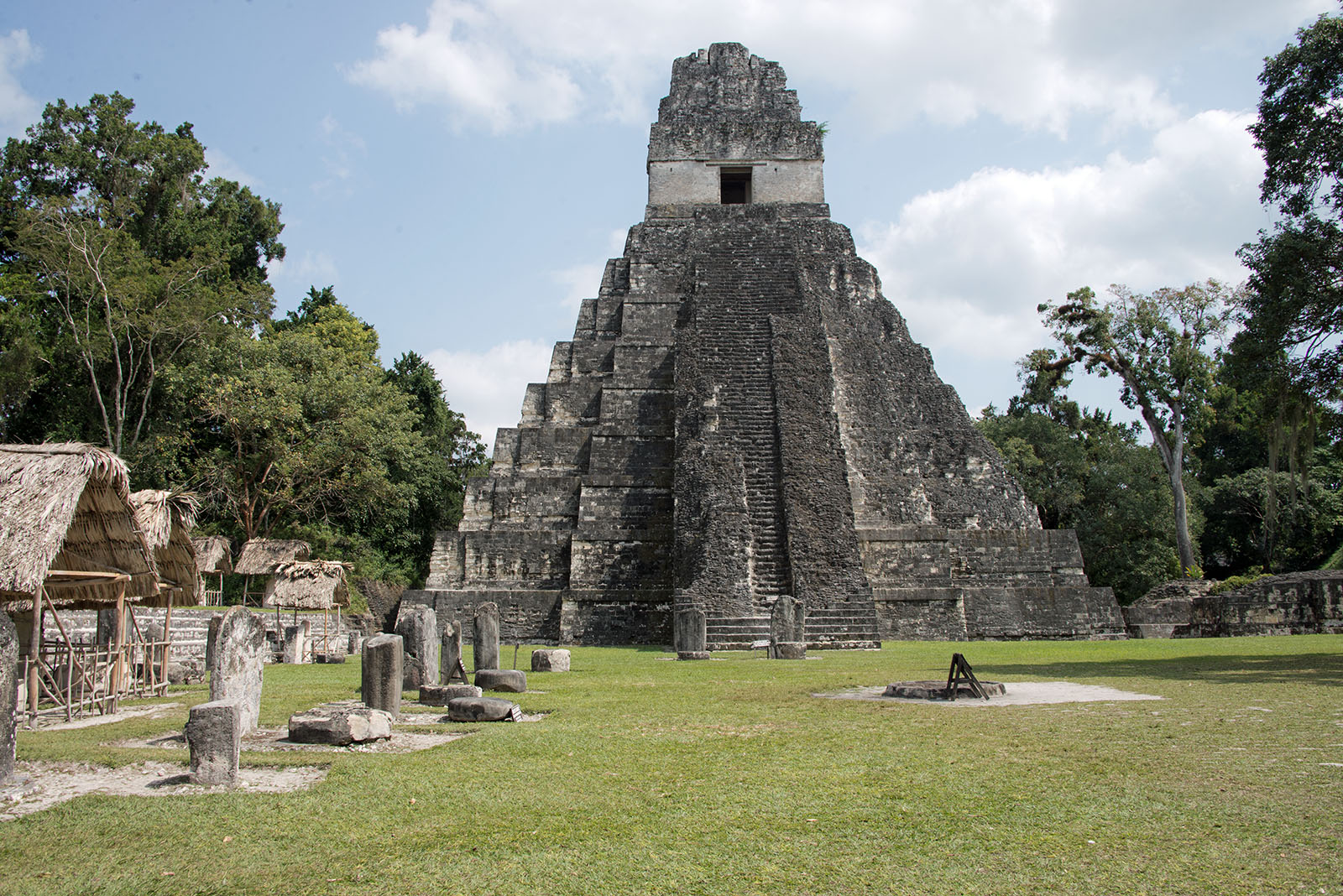 ◇ グアテマラ北部のペテン地方の深い森林にあるティカル遺跡は勾配の急な階段を持つ神殿群が多数建てられ, 8世紀の全盛期には人口6万人程度が暮らしたとされる古典期マヤ文明を代表する都市である。