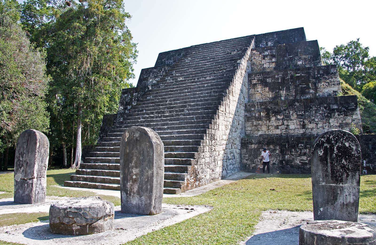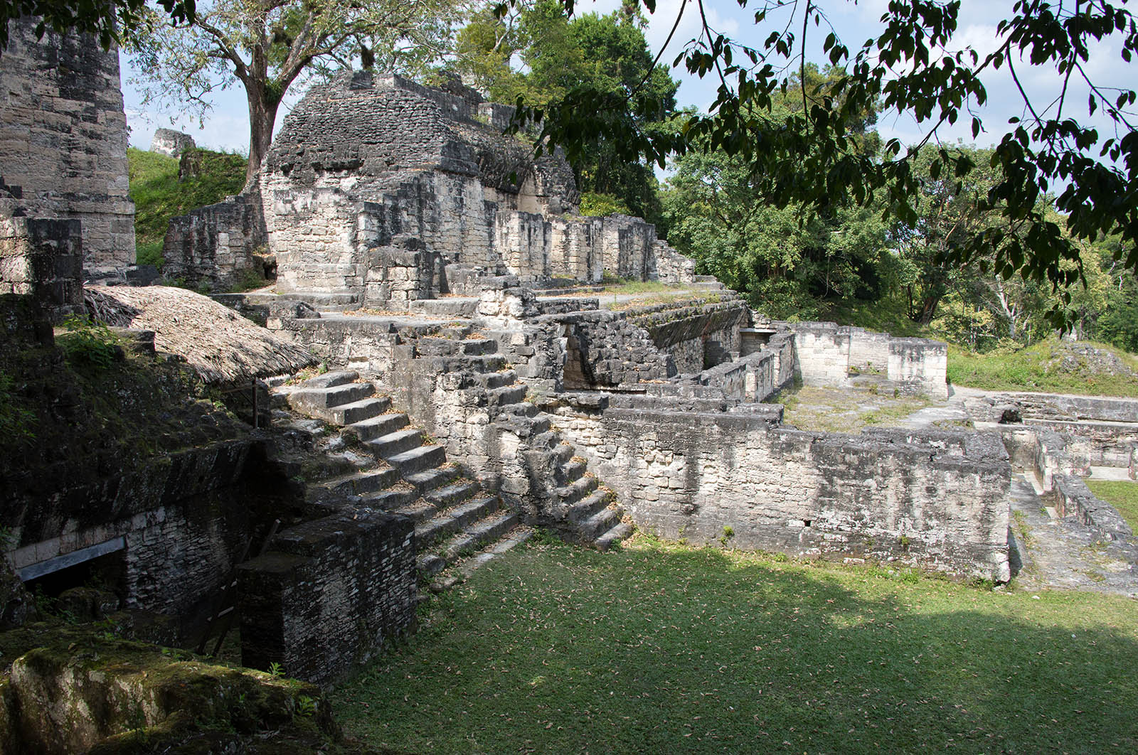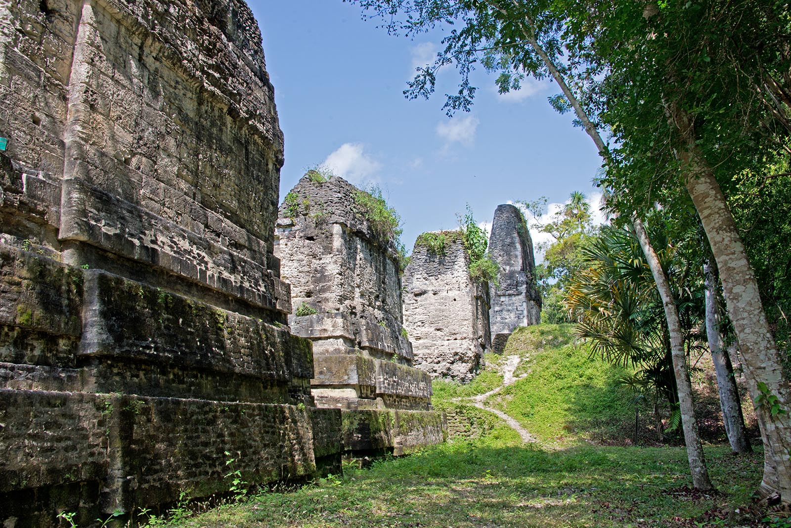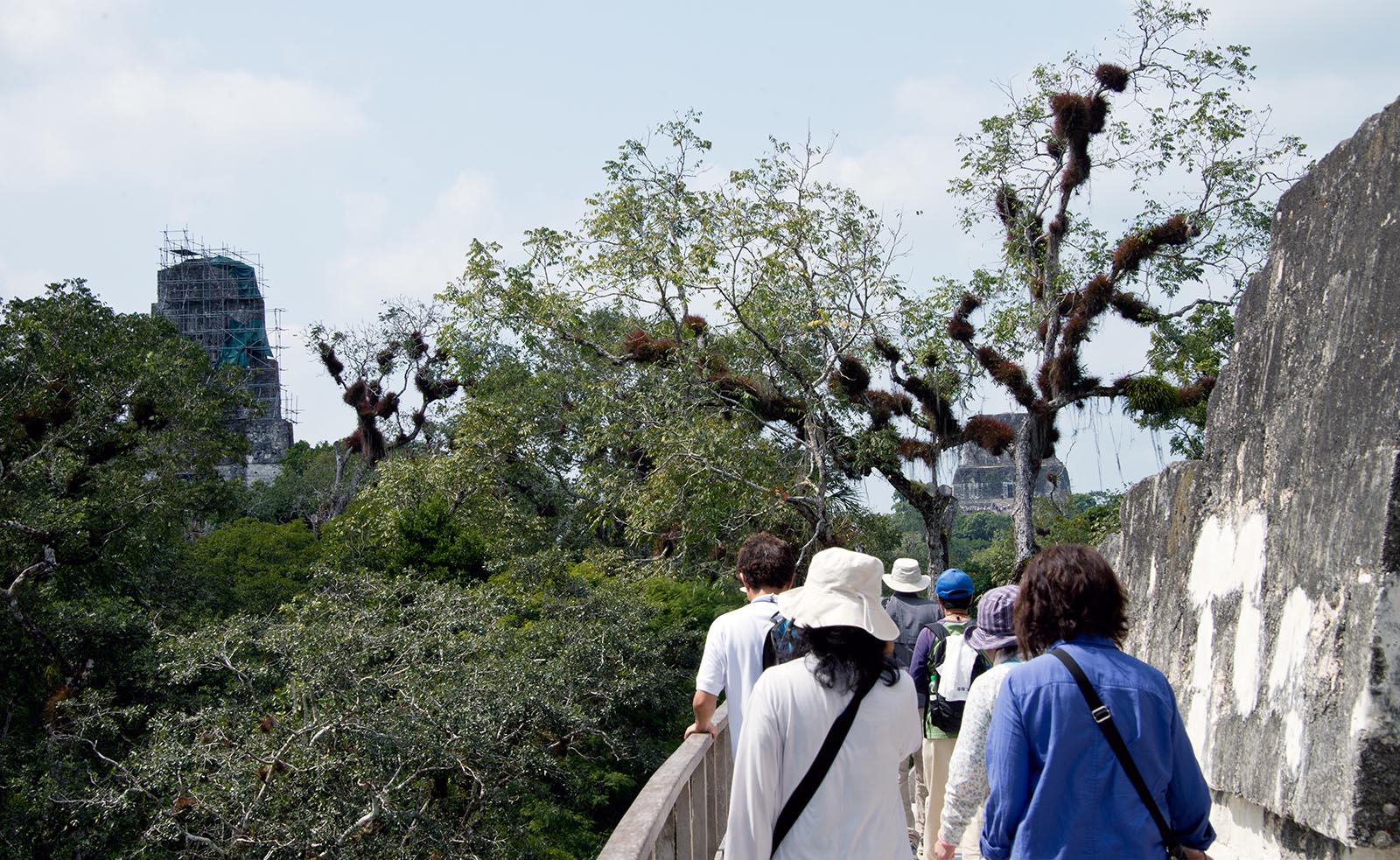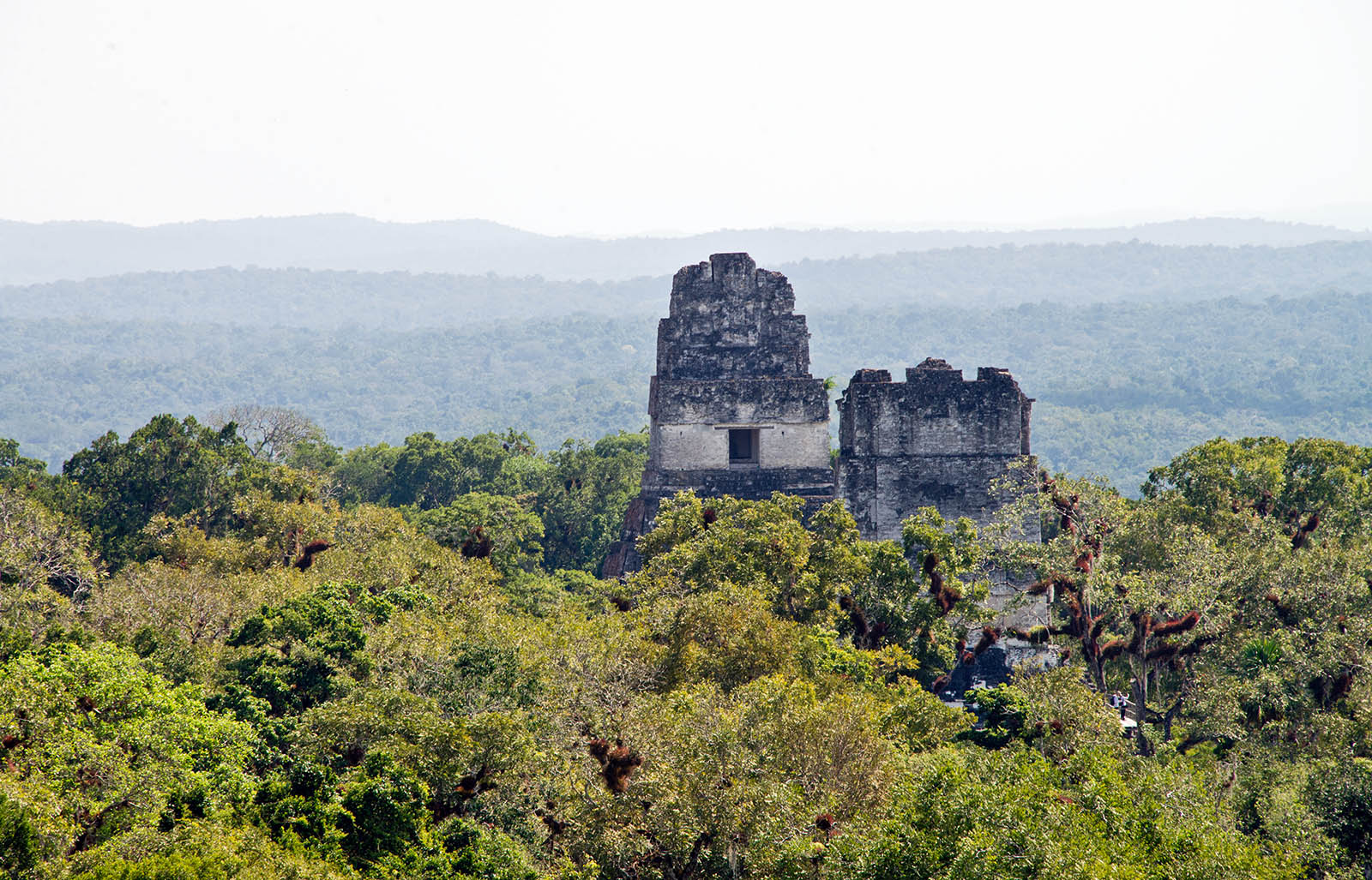 ◇ グアテマラ北部のペテン地方の深い森林にあるティカル遺跡は勾配の急な階段を持つ神殿群が多数建てられ, 8世紀の全盛期には人口6万人程度が暮らしたとされる古典期マヤ文明を代表する都市である。