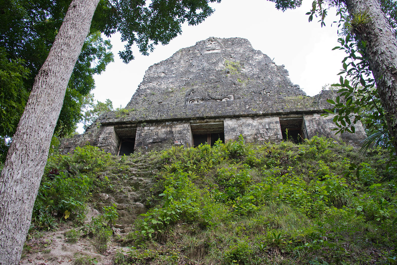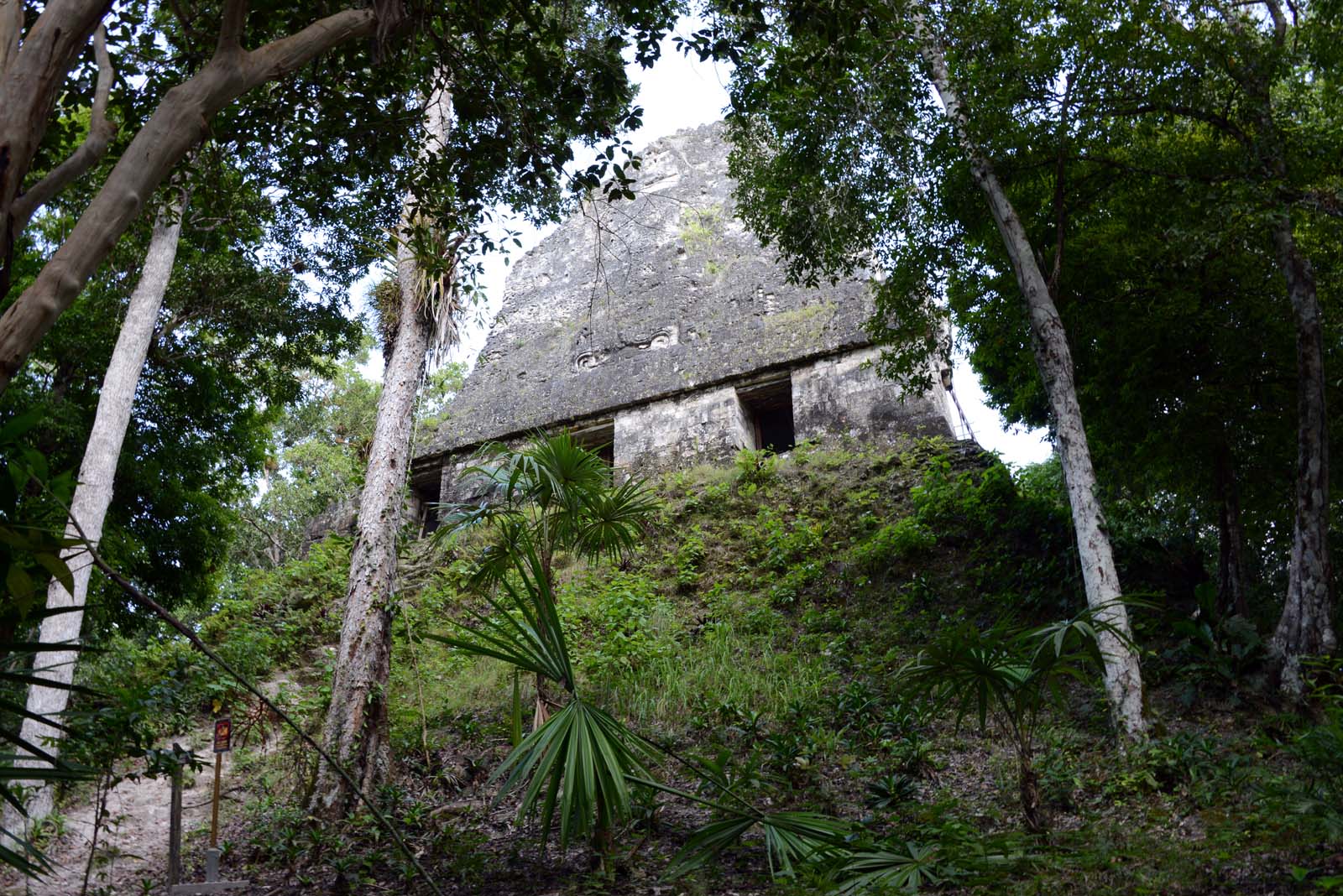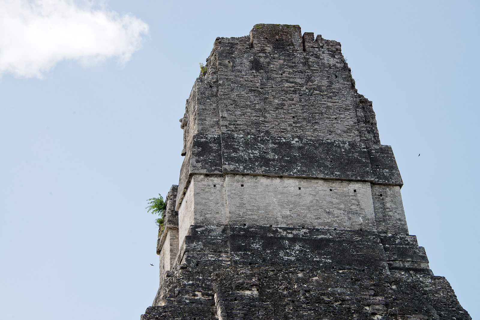 695年にカラクムルを打ち負かした ハサウ・チャン・カウィール王 (682-734AD) により 700AD 頃に造られた高さ52mのピラミッド。九層の急勾配の基壇上に神殿が築かれ、高く大きな屋根飾りで 上部が装飾されたティカルの代表的な建造物。屋根飾りの装飾は風化が激しいが、当時はクリーム色、赤、緑、青に塗られ、ピラミッド全体は赤く仕上られていたようです。