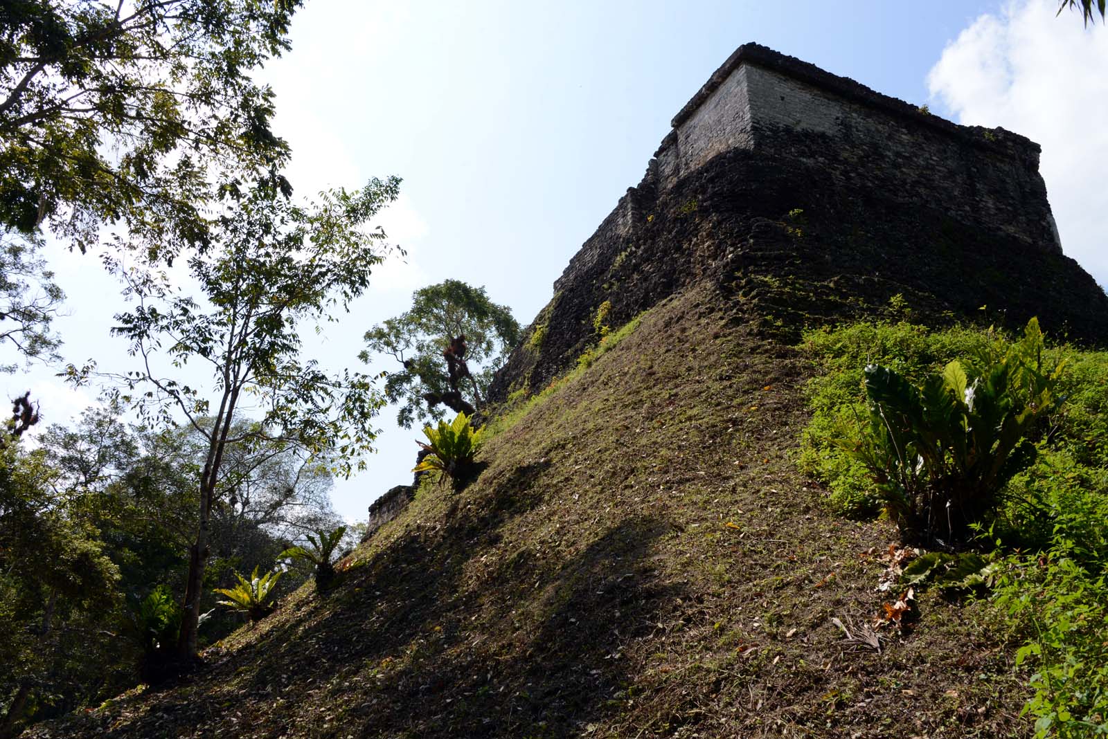 高さは58m近くあり、第IVの神殿に次ぐ高さを持つ8世紀前半の建造物です。13年前にきれいに修復されたが、北向きの勢かすでにコケなどで黒くなり貫禄のある姿になっている。