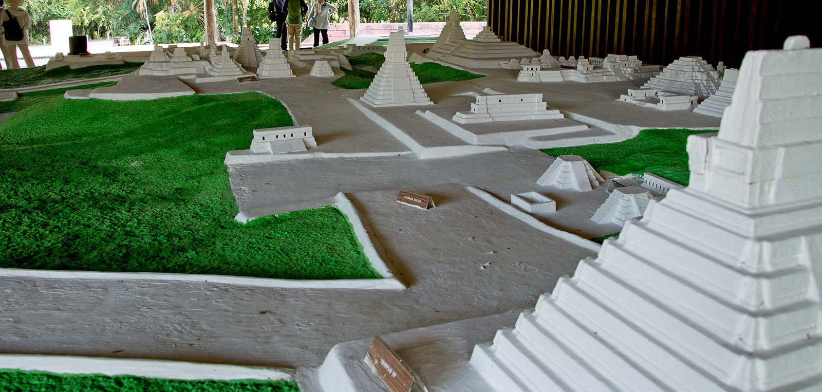ティカル遺跡中心部の模型 (縮尺は全く合っていない、建物の距離は離れている)