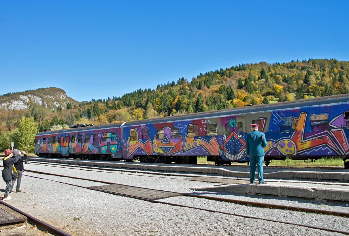 ボーヒン鉄道に乗る(車体にはスプレイアート) |