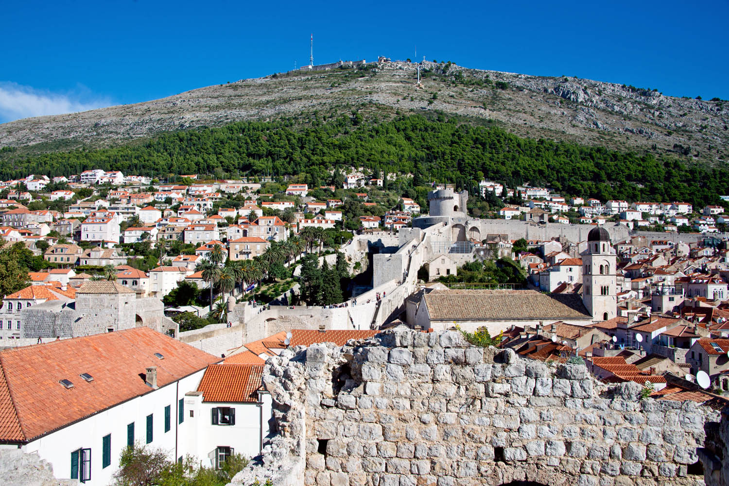 民族学博物館付近から見たスルジ山 城壁への登り口、ミンチェタ要塞も見える |