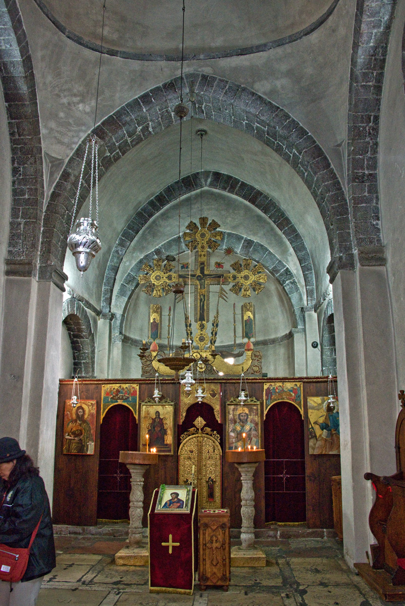 聖ルカ教会内部には、金色に輝く多くのイコン(聖画)がある。 |