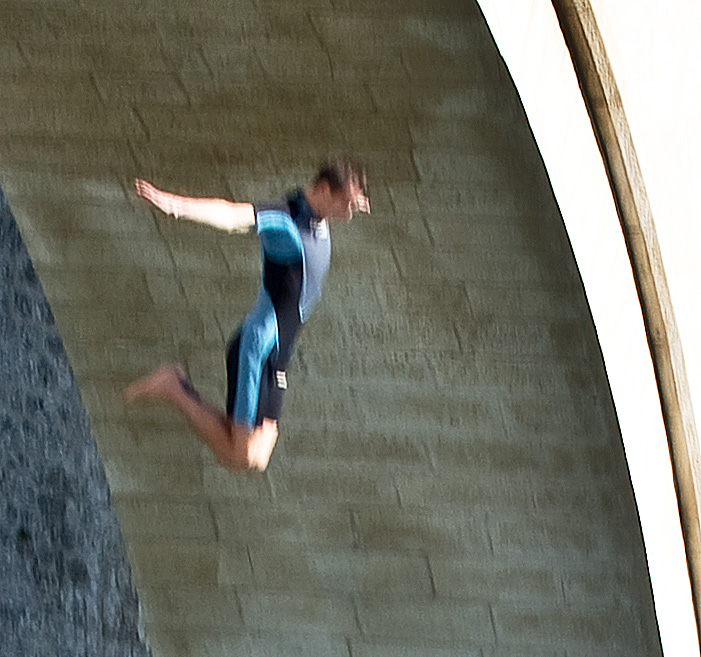お祭りで橋から川に飛び込むのが有名 練習中か |