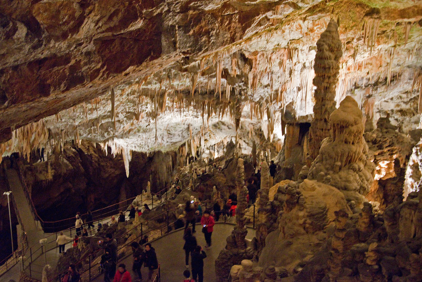 ポストイナ鐘乳洞は島洞窟、黒洞窟、ピウカ洞窟、マグダレナ洞窟等と合わせた総延長は20km以上で、スロベニアで最長である。現在の観光コースは約5kmあり、そのうち3.7kmをトロッコ電車から鍾乳洞を観覧する。トロッコはスターラ・ヤメの狭いトンネルを速い速度で奥に進む。茶色から白色に至る鍾乳石や石筍が並ぶ。鍾乳石は天井から地面に向かって成長するのに対して、石筍は地面から上方に成長する。この2つがつがなると石柱になる。鍾乳石が1mm成長するのには、10年から30年がかかるといわれる。最も白い鍾乳石は「ブリリアント」と呼ばれ、ポストイナ鍾乳洞のシンボルになっている。