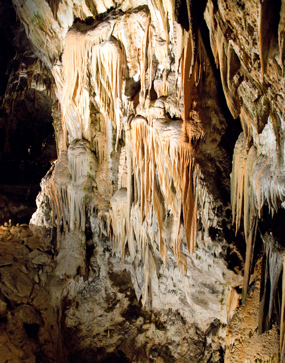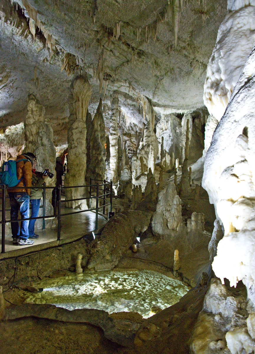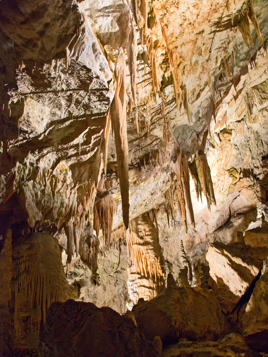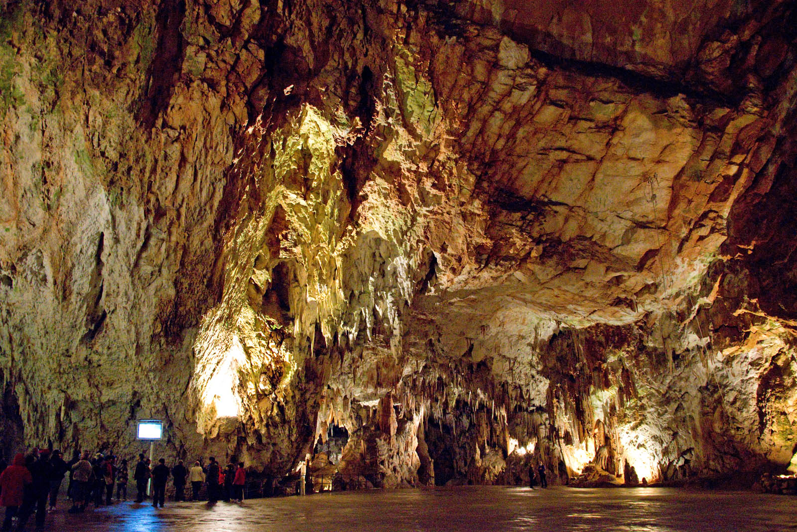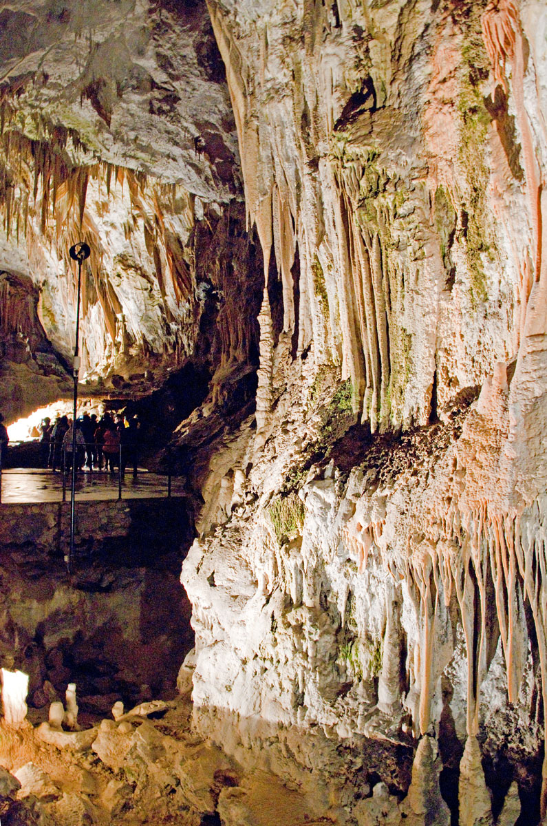 トロッコから下車し、2km程度徒歩で観覧する。「高層建築」と呼ばれるところから、大きい山(ヴェリカ・ゴラ)という洞窟の山に登り、ノアの箱舟などの石筍を見る。数々の鍾乳石を見ながら山を下り、ロシア橋を渡る。この橋は、第一次世界大戦の間、ロシア捕虜によって建設されたものである。そして鍾乳洞は最も美しい洞窟(レペ・ヤメ)に続く。ここではスパゲティホール、白のホール、赤いホールを巡る。「スパゲティ」と呼ばれる美しい細く繊細な中空状の氷柱のような形状の鍾乳管がある。最も美しい「ブリリアント」を見て、高さ40m、広さ3000平方mの大きなコンサート・ホールと呼ばれる空間に至る。実際にコンサートが開催され1万人を収容でき、ショップもある。ここから帰路の電車に乗る。