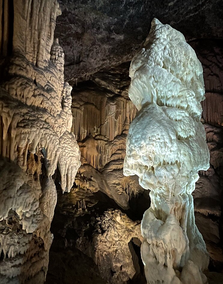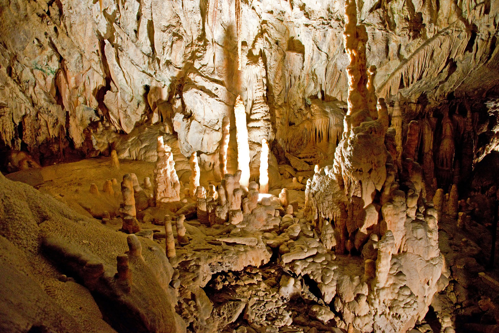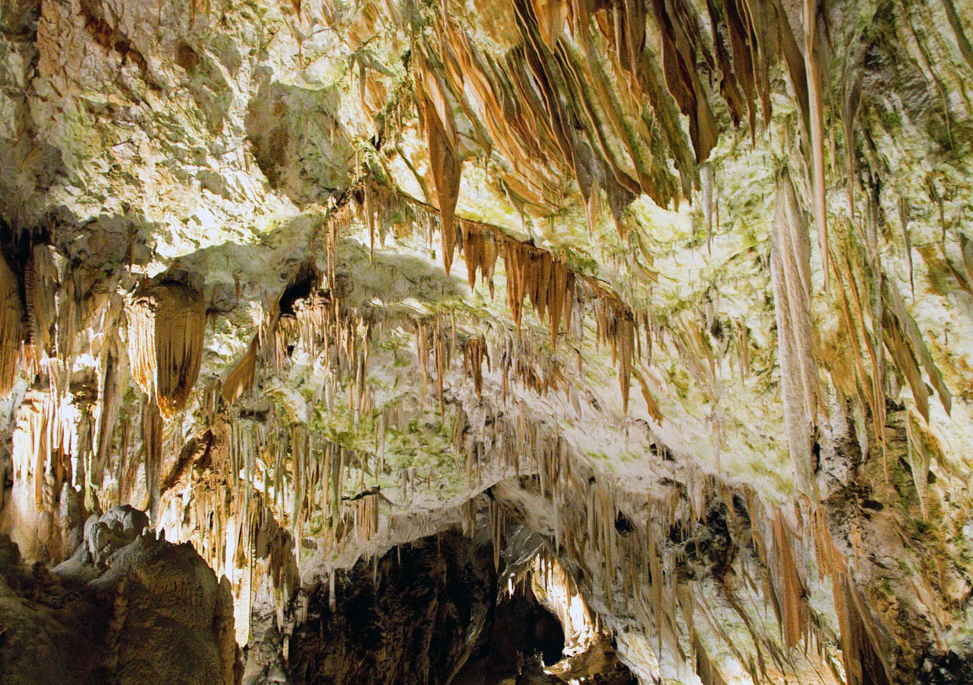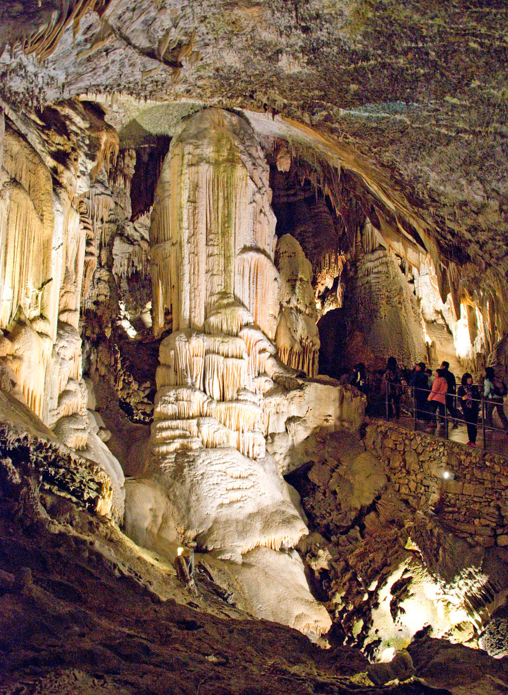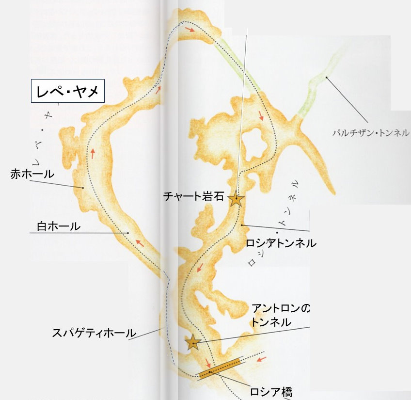 トロッコから下車し、2km程度徒歩で観覧する。「高層建築」と呼ばれるところから、大きい山(ヴェリカ・ゴラ)という洞窟の山に登り、ノアの箱舟などの石筍を見る。数々の鍾乳石を見ながら山を下り、ロシア橋を渡る。この橋は、第一次世界大戦の間、ロシア捕虜によって建設されたものである。そして鍾乳洞は最も美しい洞窟(レペ・ヤメ)に続く。ここではスパゲティホール、白のホール、赤いホールを巡る。「スパゲティ」と呼ばれる美しい細く繊細な中空状の氷柱のような形状の鍾乳管がある。最も美しい「ブリリアント」を見て、高さ40m、広さ3000平方mの大きなコンサート・ホールと呼ばれる空間に至る。実際にコンサートが開催され1万人を収容でき、ショップもある。ここから帰路の電車に乗る。